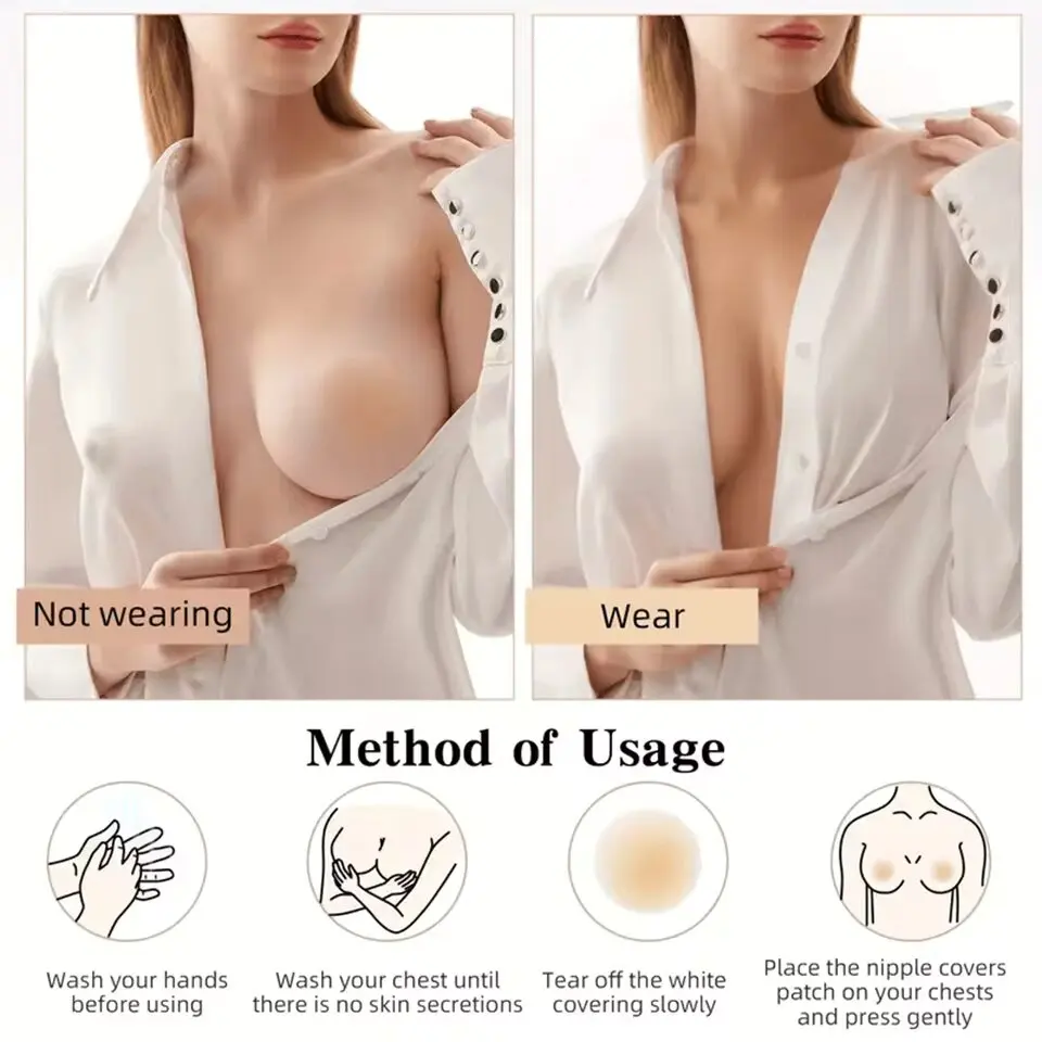 Non Adhesive Nipple Cover Pasties Silicone Bra Liner Women Reusable Breast Pads Boob Tape Invisible Chest Sticker No-Show Insert