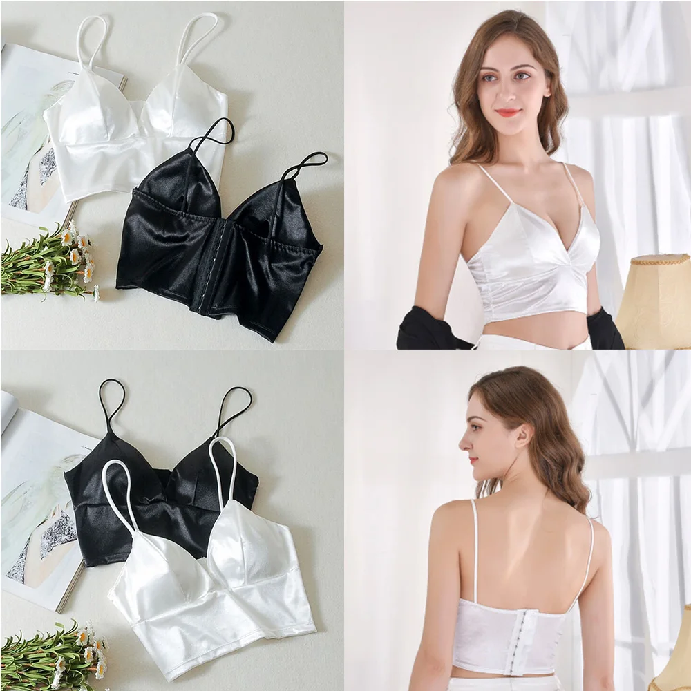 Sexy Tube Top Silk Chest Wrap Deep V Multi-Breasted Sleeveless Bra Crop Top Bandeau Padded Bra Wrap Chest Bra Vintage Underwear