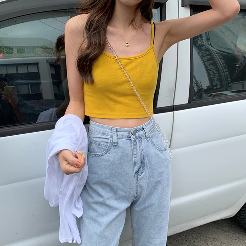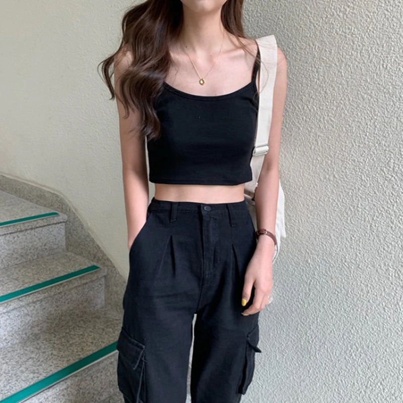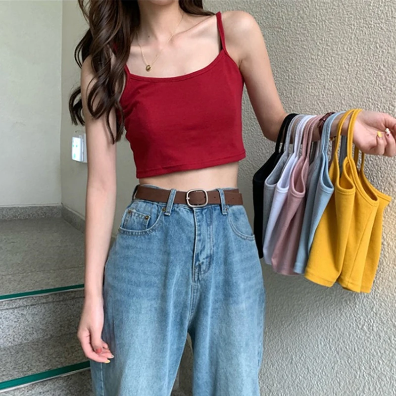 Women Sexy Solid Camis Crop Top Casual Tank Tops Vest Sleeveless Streetwear Club High Street