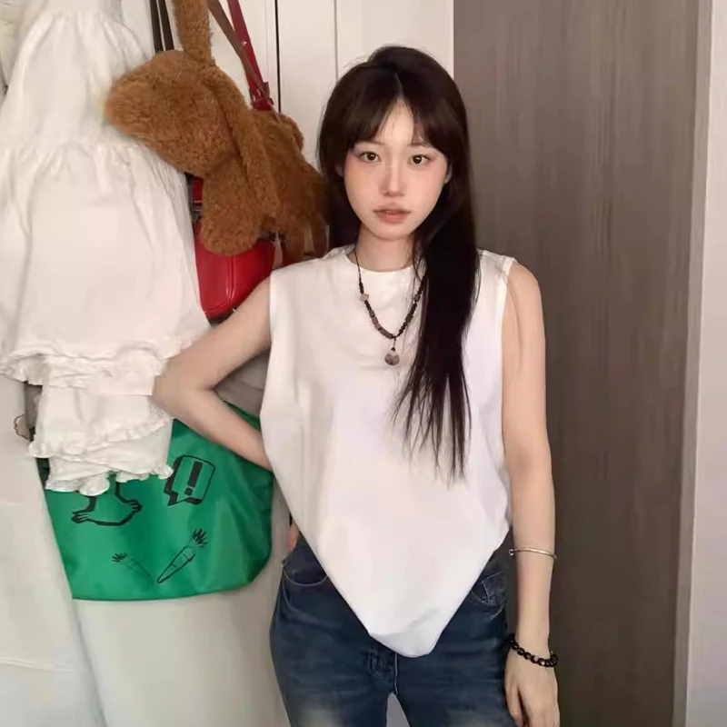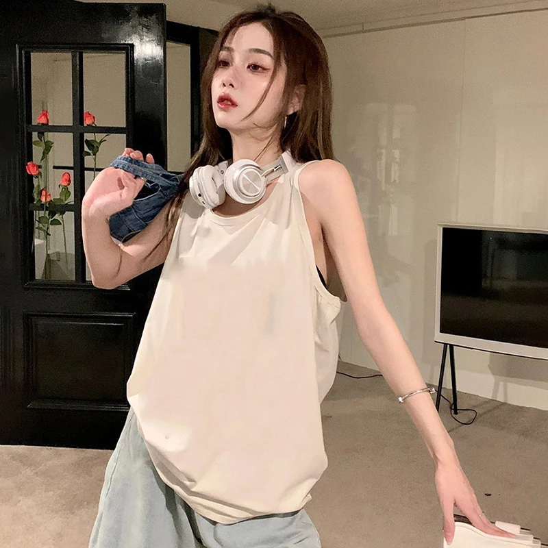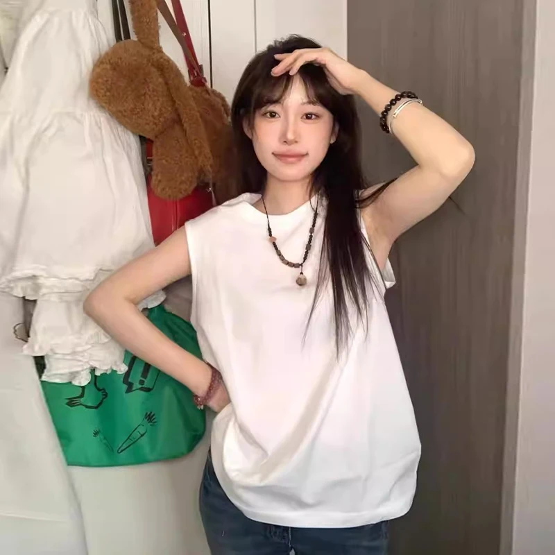 Summer Fashion Solid Color Basic Round Neck Sleeveless Loose Casual Camisole For Women