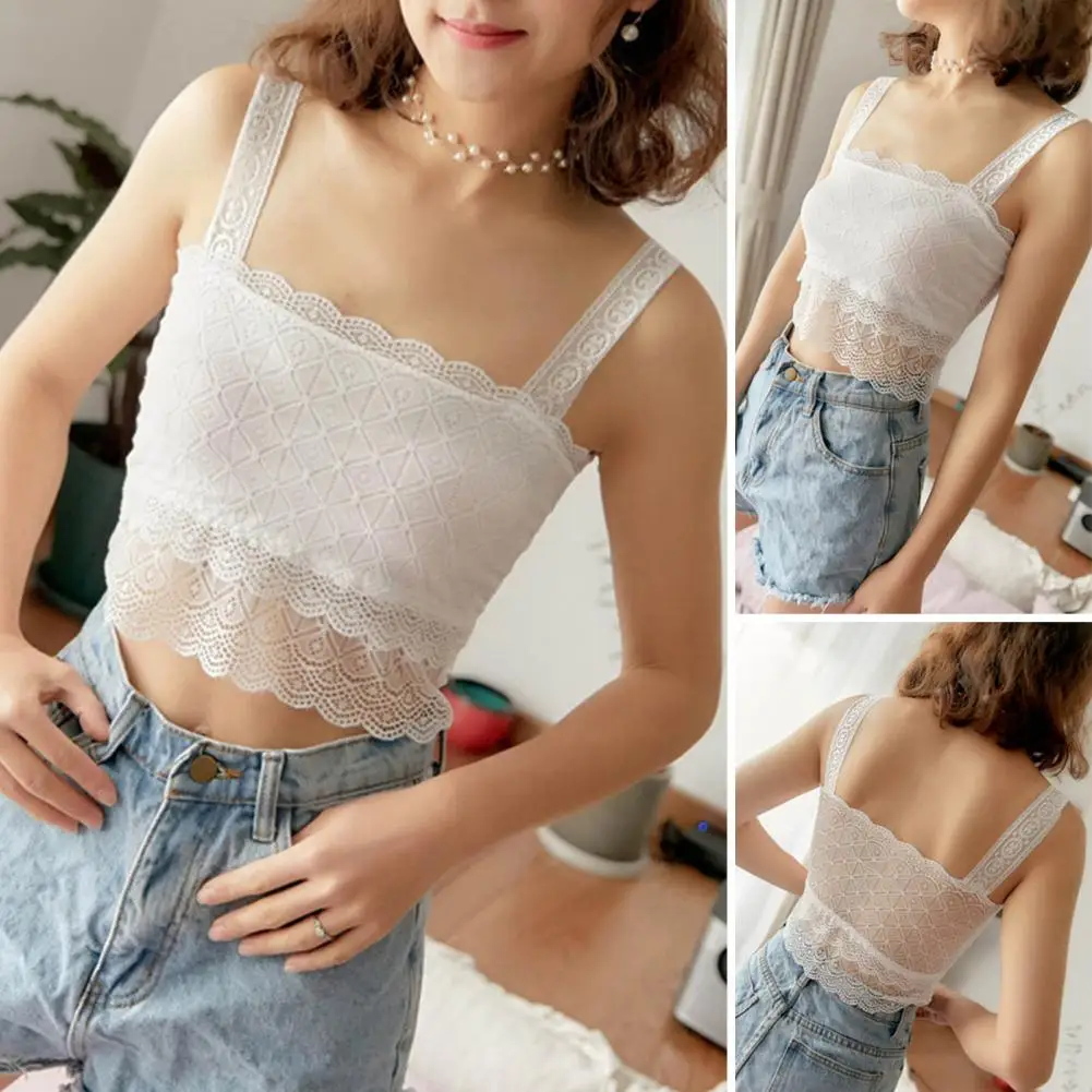 Women Lace Bralette Bra No Sponge Tank Tops Bra Sexy Chest Camisoles Crop Top Woman Lace Tank Hollow Out Base Girls Bustier Bra