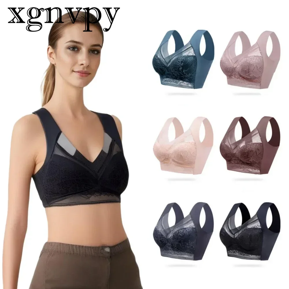 xgnvpy Big Breasts Small Back Bra Anti-sag Fixed Cup No Underwire Integrated Comfortable Seamless Underwear Thin for Women