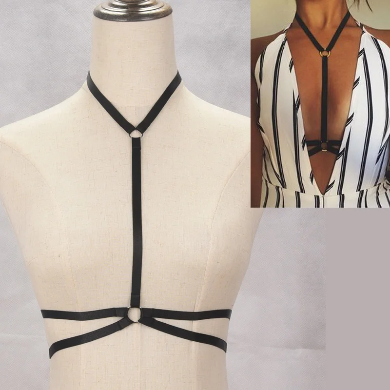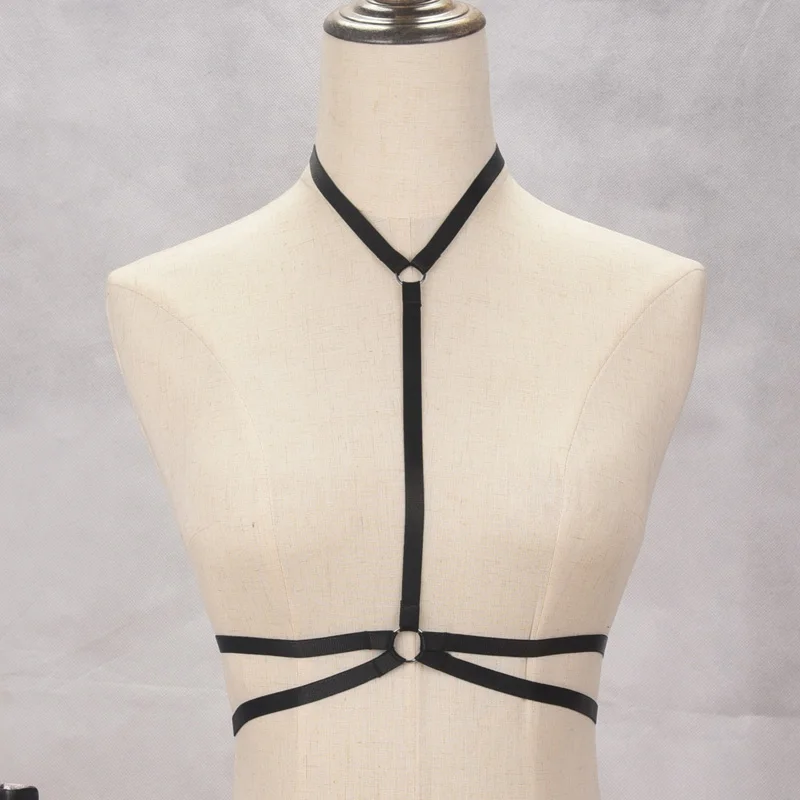 JLX.HARNESS Hot pastel goth fetish collar strappy underbust binding body harness bra quality harness sexy bondage lingerie top