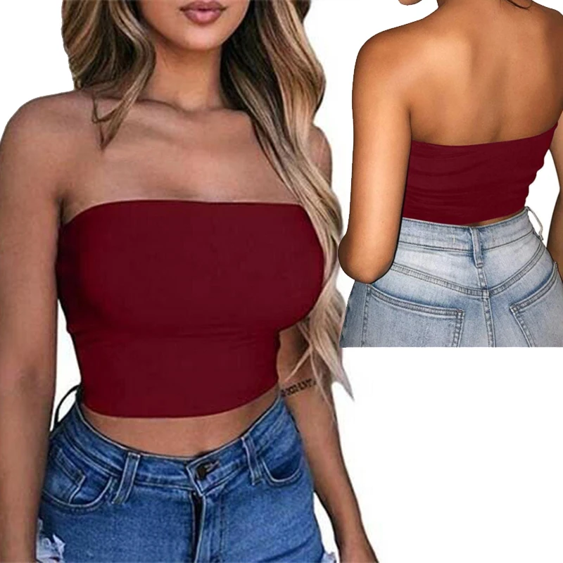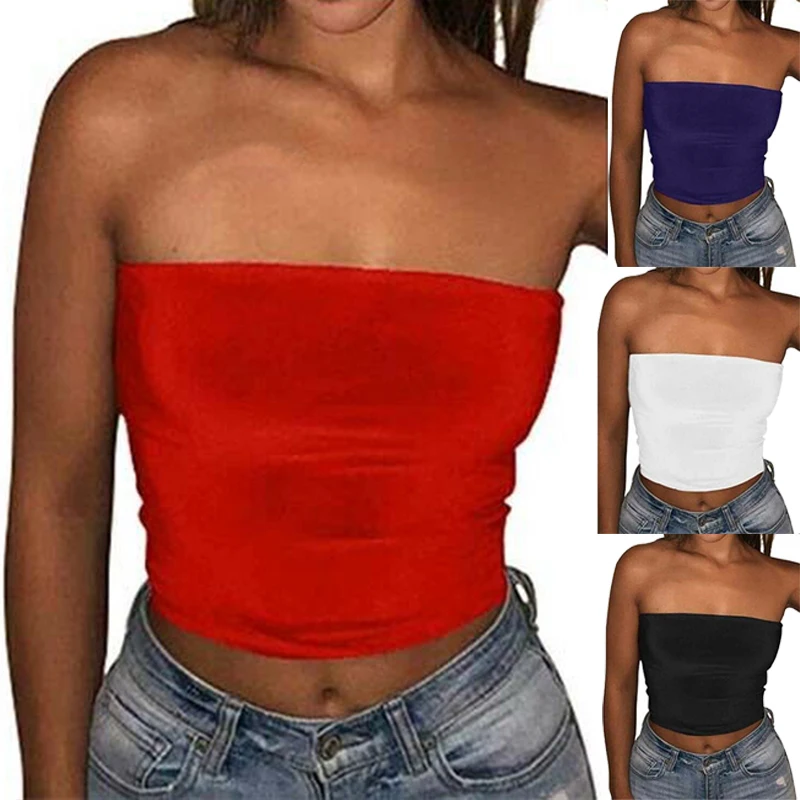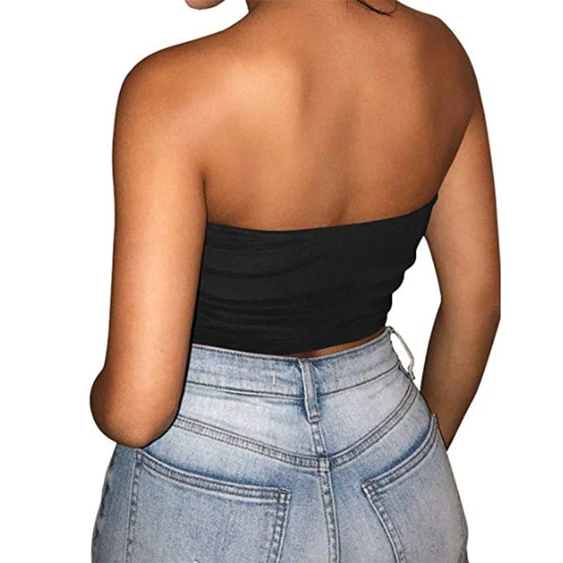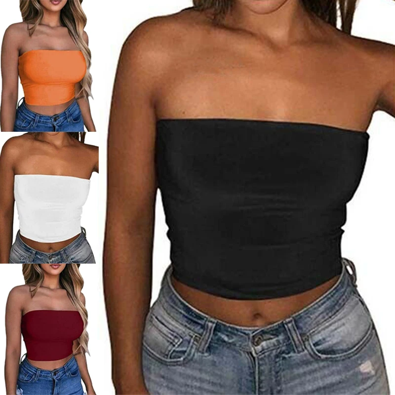 Women's Solid Color Tube Tops Sexy Strapless Off Shoulder Crop Tube Top Vest Stretchy Bandeau Comfortable Seamless Underwear Top