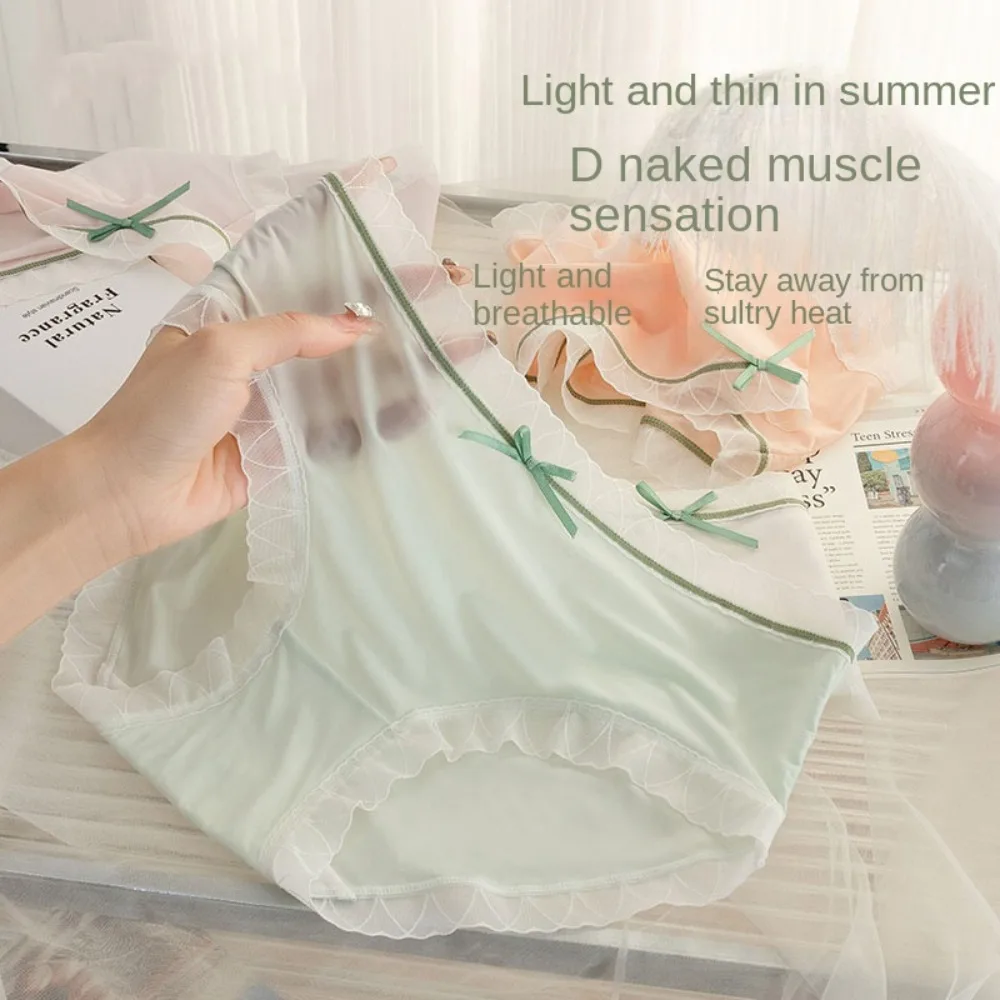 Name | Elastic Ultra Thin Ice Silk Panties Bow Soft Middle Waist Briefs Underwear Japanese Style Seamless Lingerie Girls |