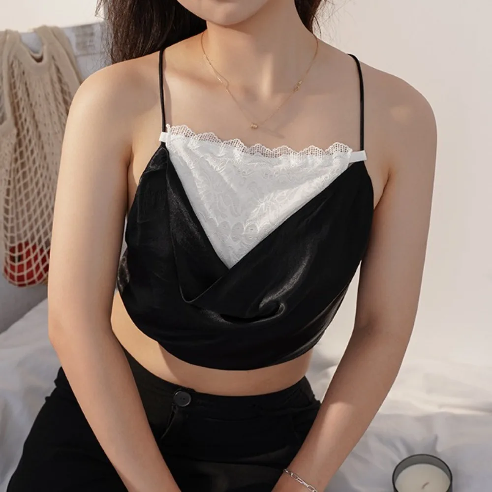 Double Layer Strapless Insert Wrapped Chest Mesh Transparent Lace Flower Anti-Glare Tube Top Chest Cover Up Thin