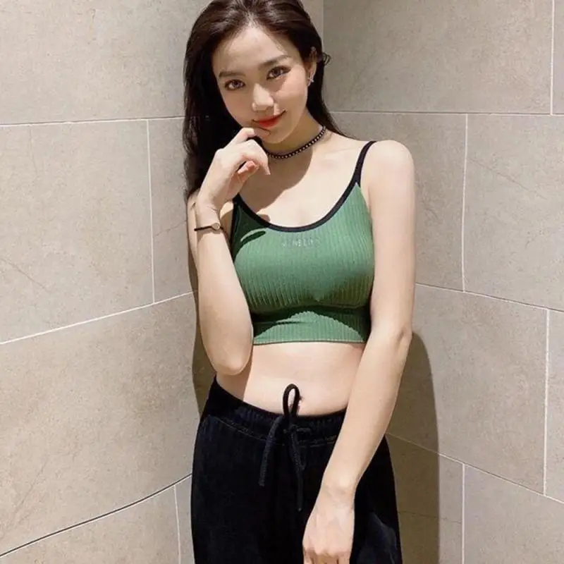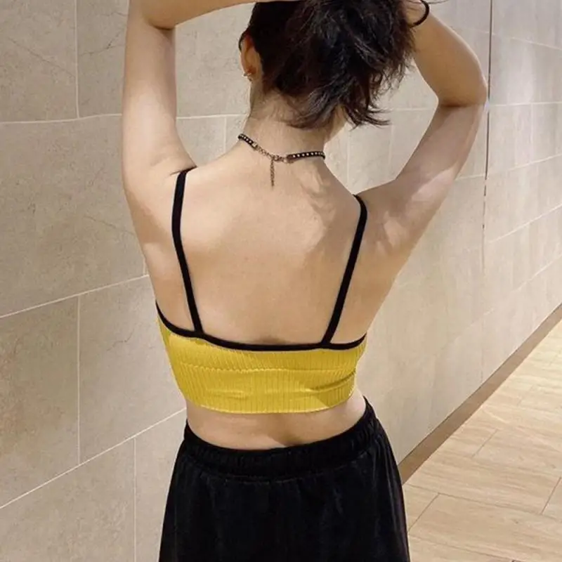 Women Seamless Yoga Bra Breathable Tube Top Fitness Top Letter Print Corset Tank Top Preppy Underwear Knitting Sports Lingerie