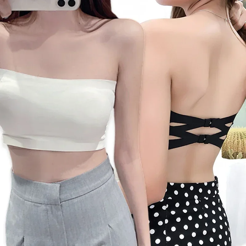 Summer One Piece Seamless Bra Women Ice Silk Strapless Tube Tops Breathable Bralette Female Sexy Invisible Chest Underwears