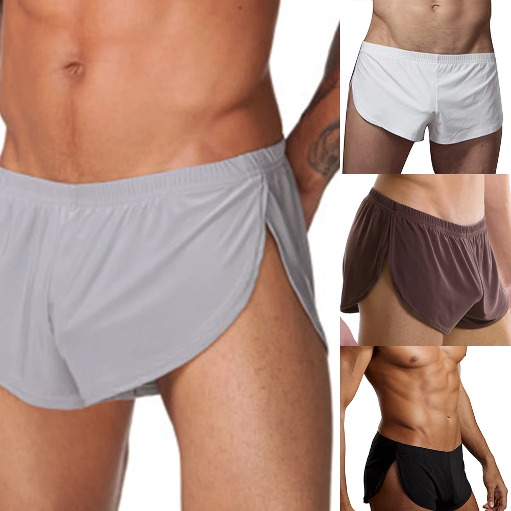 Solid Color Casual Men Elastic Waistband Split Shorts Underwear Home Sportswear Трусы Мужские Sexy Boxer Мужские Трусы Interior