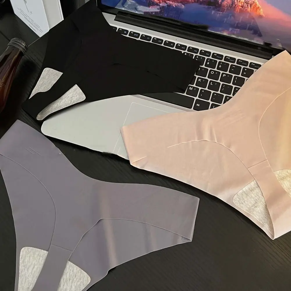 Mid Waist Women's Summer Ice Silk Panties Underpants Thin Ice Silk Seamless Briefs Thong Underwear Cotton Crotch Lady