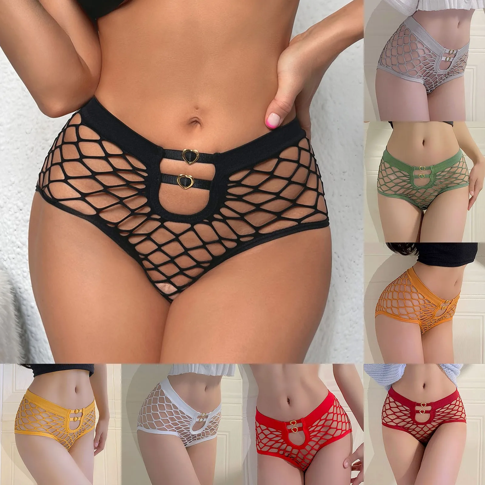 Y2k Fish Net Panties Womens Underwear Perspective Lingerie Thongs Female Low Cut Underpants White Intimate Techwear Egirl Grunge