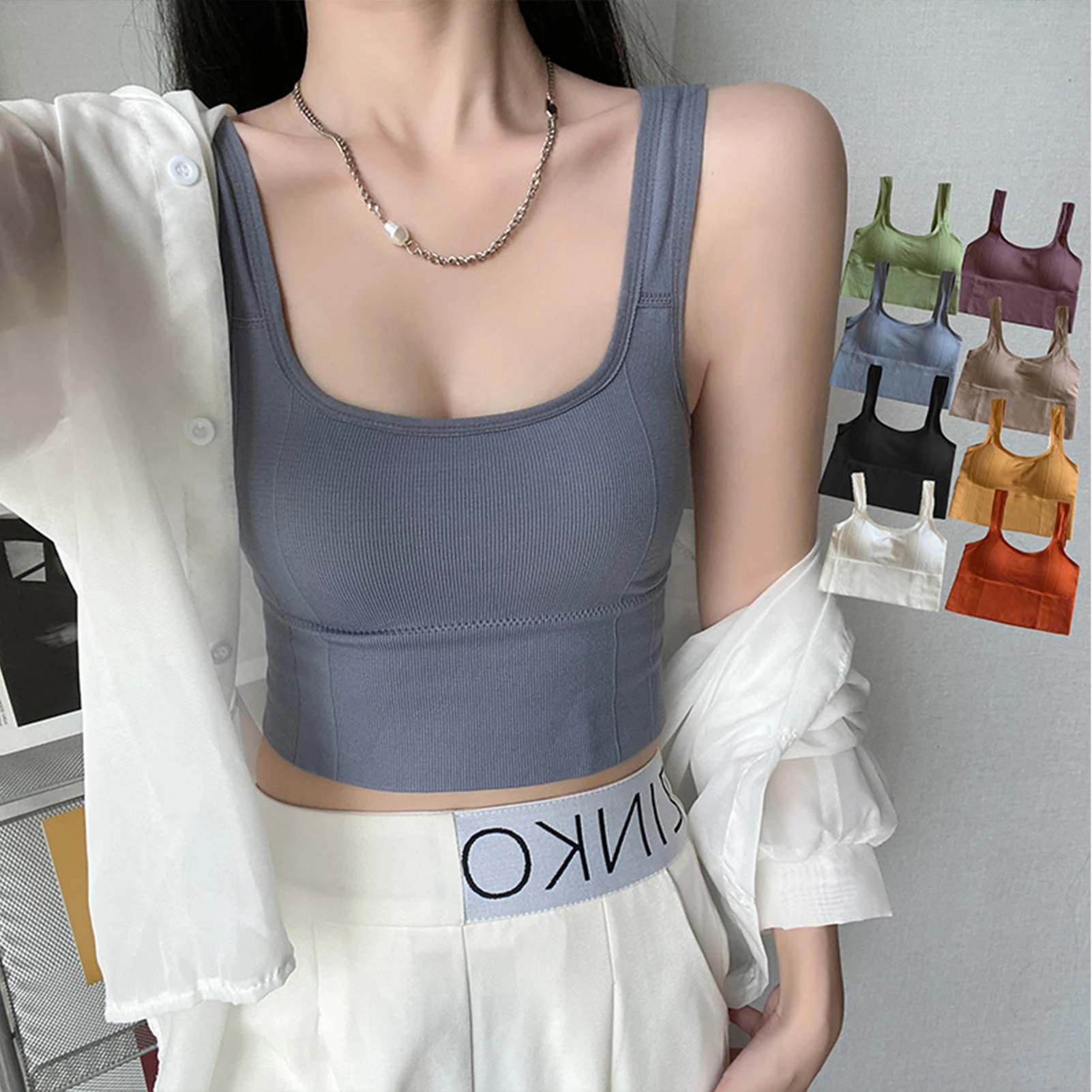 U-Shaped Bottoming Underwear Soft Comfy Tank Tops Camisole Undershirt Bralette Top for Women Girls