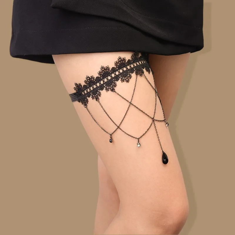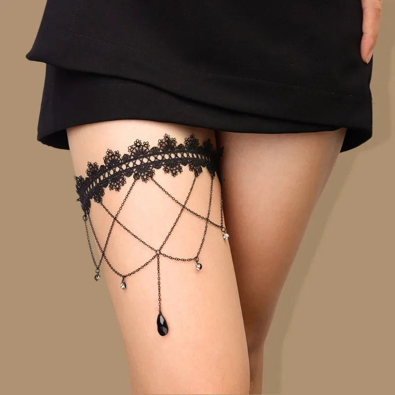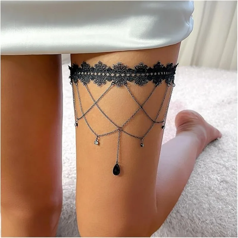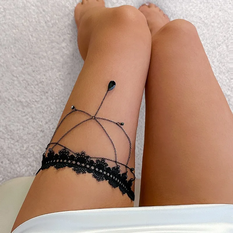 Name | Elastic Band Black Lace Tassel Multi-layer Gemstone Thigh Chain for Women's Bikini Summer Festival Party Body Jewelry Accessorie |