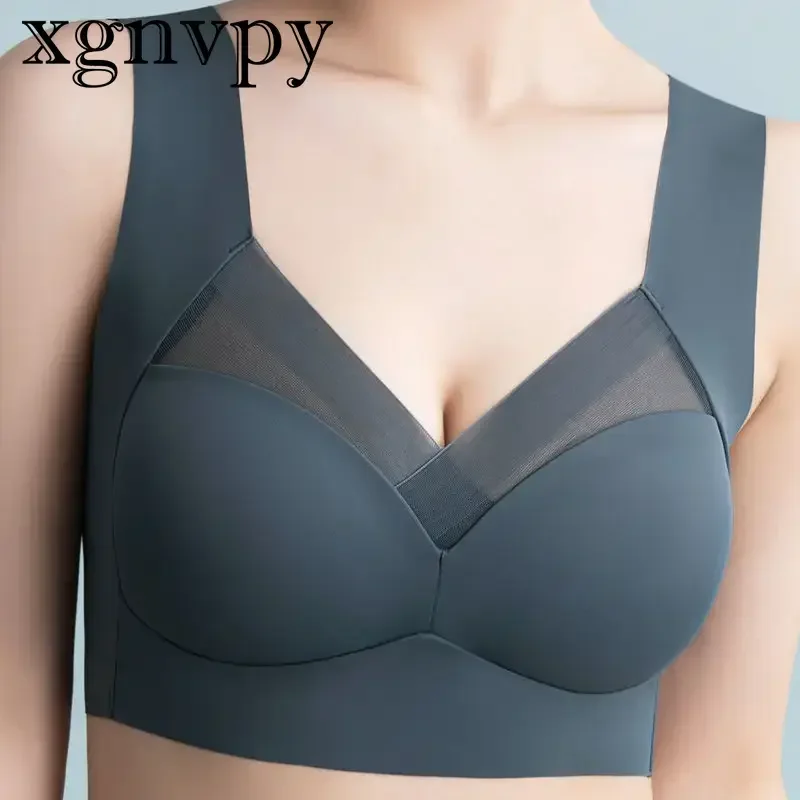 xgnvpy One piece Fixed cup Seamless Ice Silk Thin Back Wrap Chest no underwire sport top bra