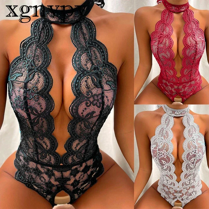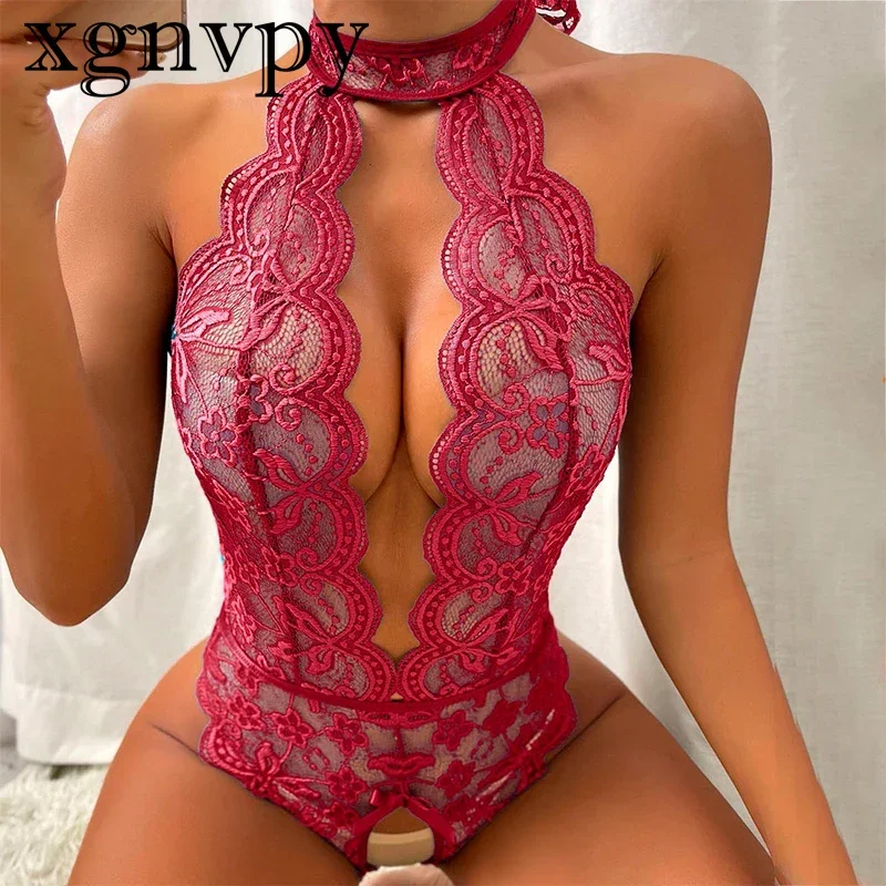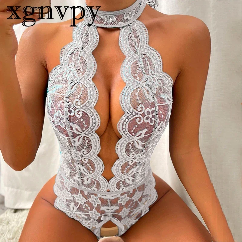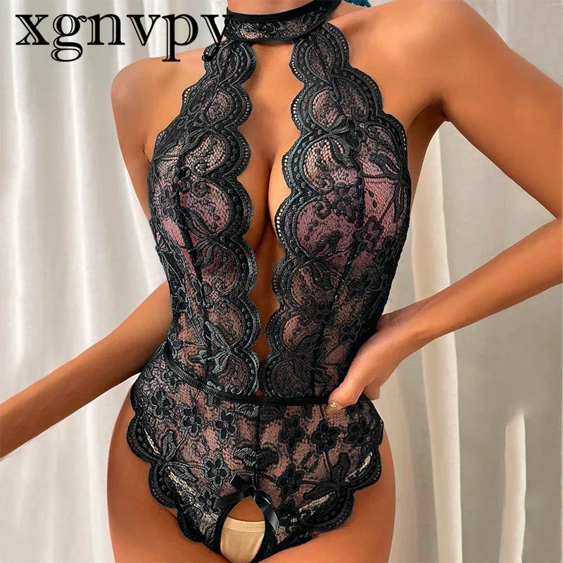 xgnvpy Sexy open tights underwear for women lace see-through night dress sexual clothing Sexy lingerie sheath set