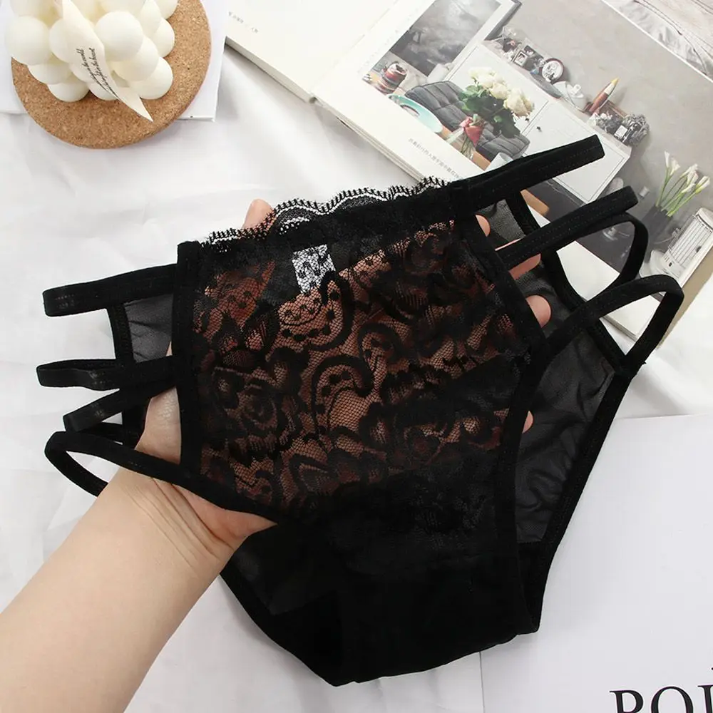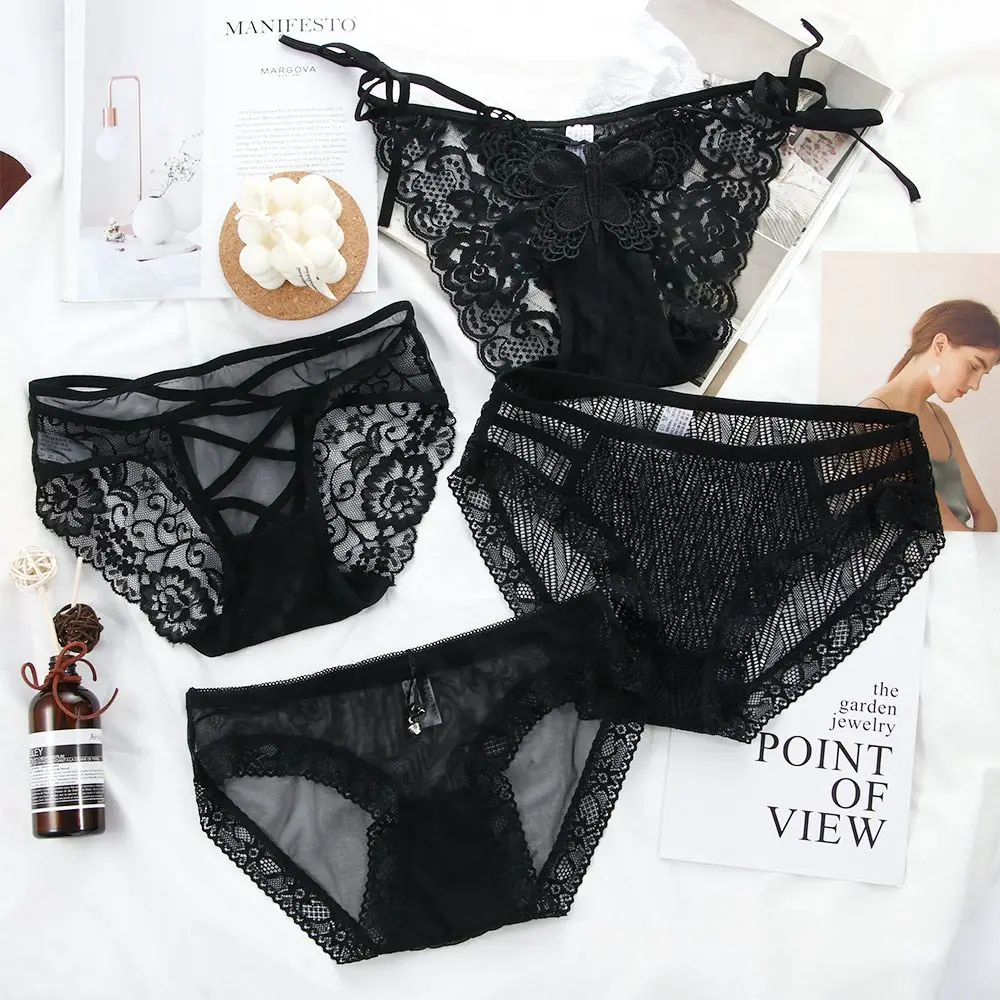 Name | Fashion Sexy Black Lace Hollow Out Women Panties Low waist Thin Mesh Seamless Briefs Cotton Crotch Lingerie |