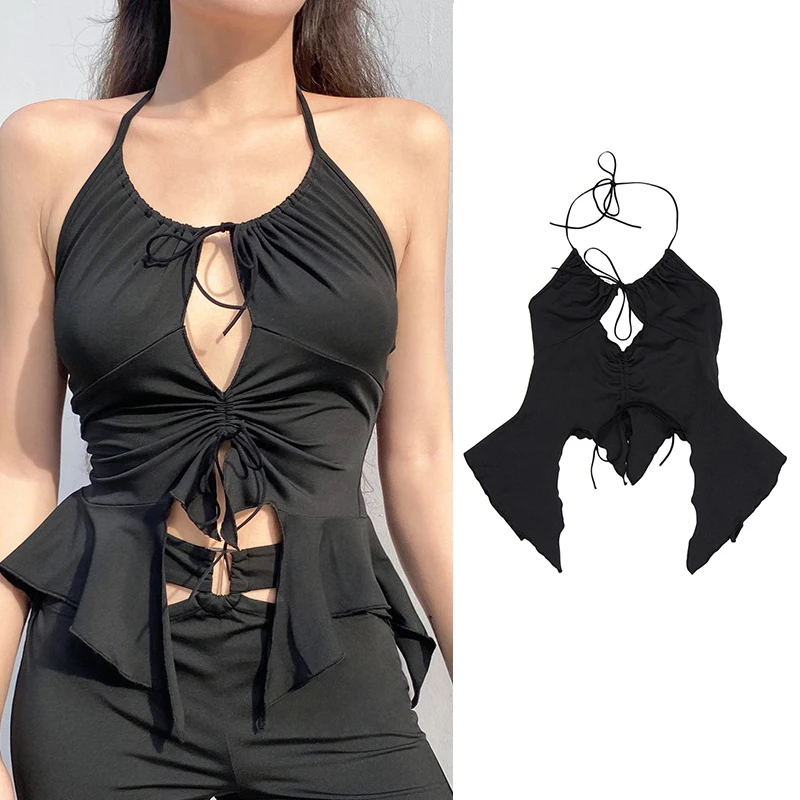 Black Color Sexy Crop Tops Women Summer Basic Tank Tops Streetwear Sleeveless Camis Cool Girls Cropped Camisole Female Underwear
