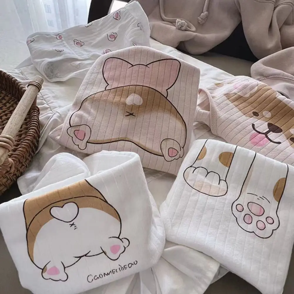 Women Underwear Corgi Heart Print Panties Mid Waist Cotton Briefs Stripe Korean Style Kawaii Cute Dog Briefs