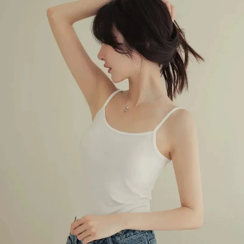 Sexy Sling Vest Women Girls Solid Color Versatile Elastic Crop Tops Soft Comfortable Breathable Vest Tops Fashion Accessories