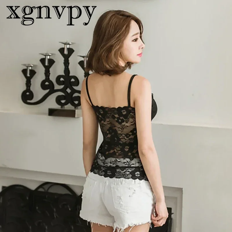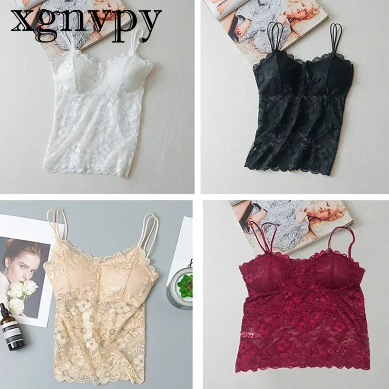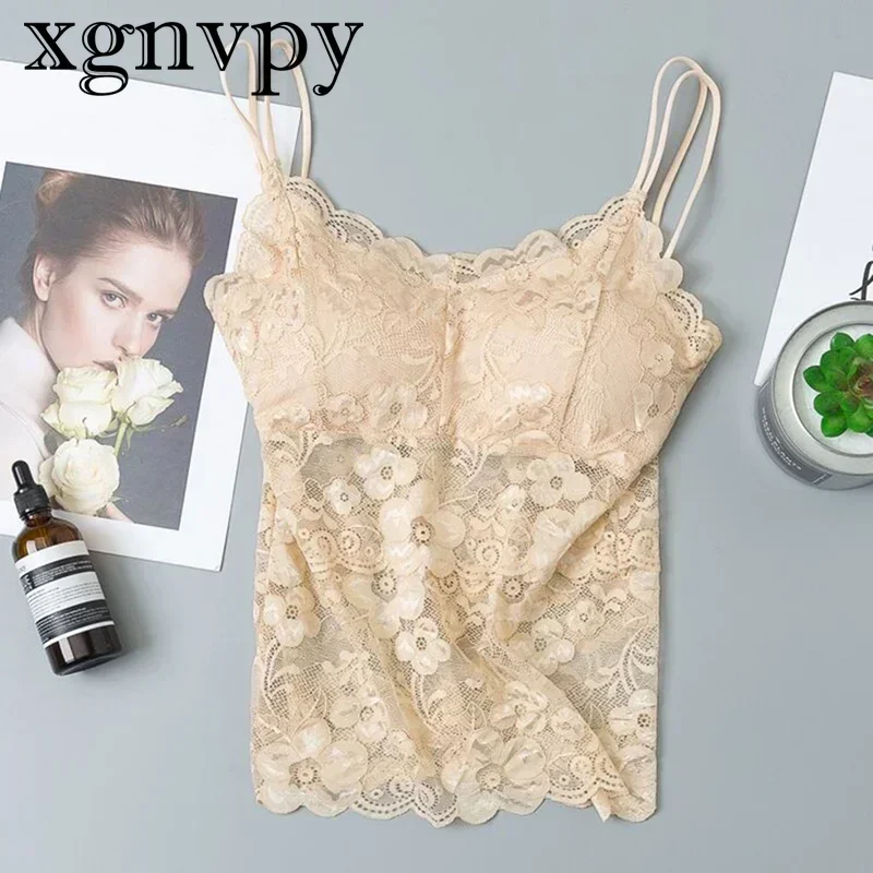 xgnvpy Floral Cami Padded Tank Top Women's Underwear Sexy Lace Bralette Crochet Flower Vest Camisole Top