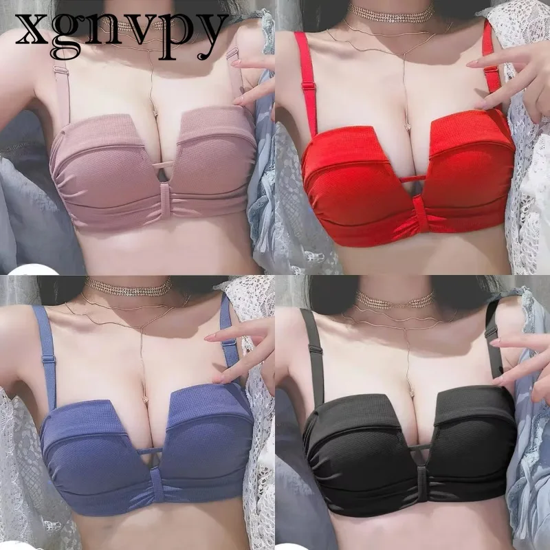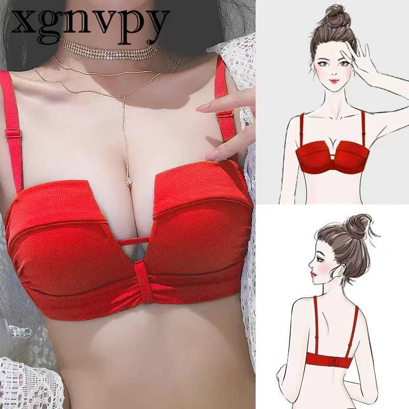 xgnvpy Women's Bra Small Chest Comfort Push Up Brasieres No Steel Ring Underwear Sexy Backless Bras Red Black Bralette