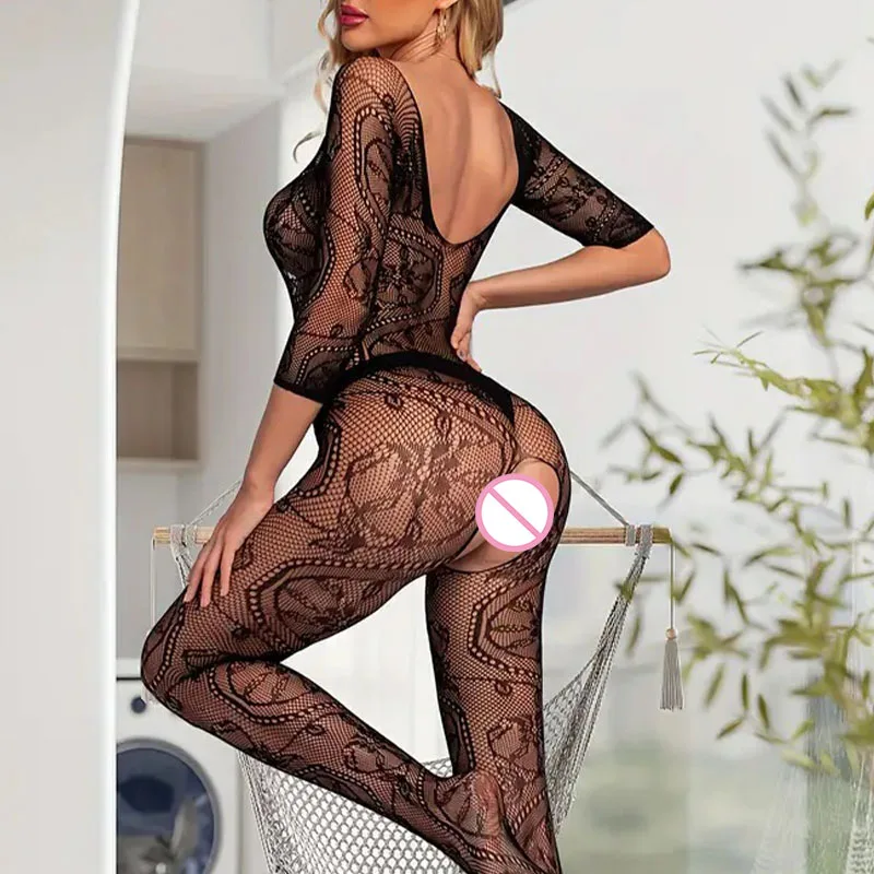 Plus Size Sexy Lingerie One-piece Crotchless Transparent Women Fishnet Bodystockings Erotic Open Bra Bodysuit Exotic Costumes