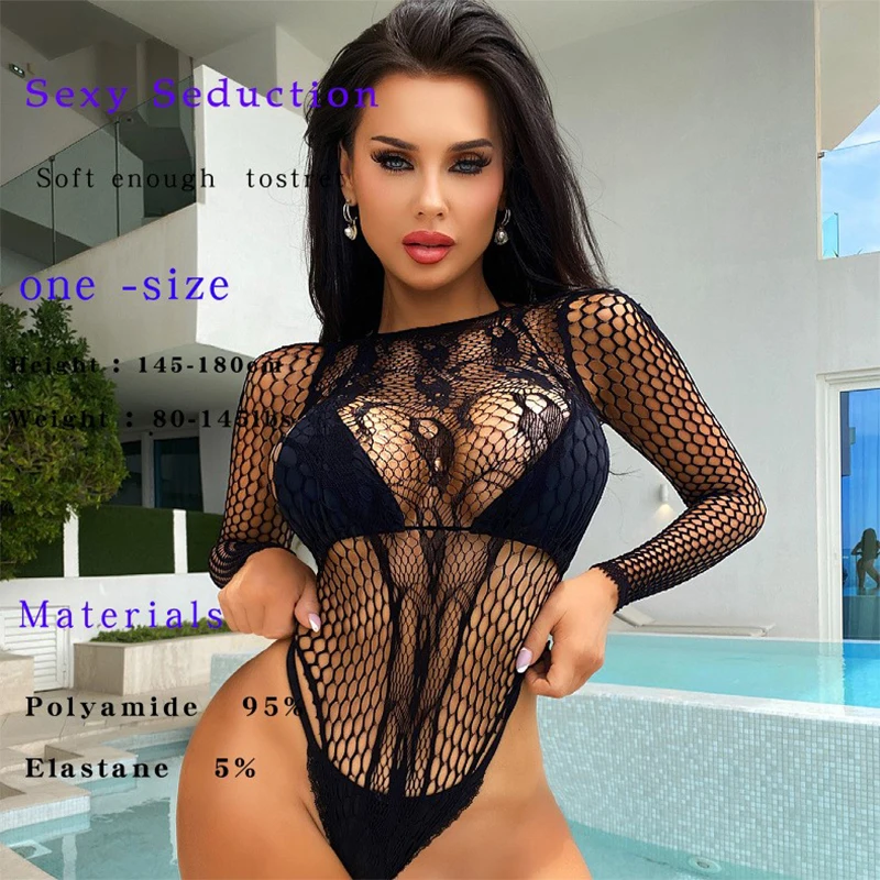 Name | Sexy Lingerie Bodystockings Women Fishnet Open Crotch Catsuit Mesh Tights Long Sleeved Lingerie Erotic Jumpsuit Bodysuit |