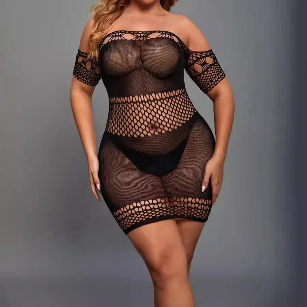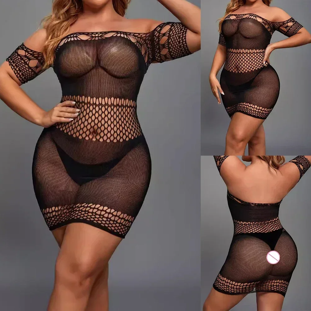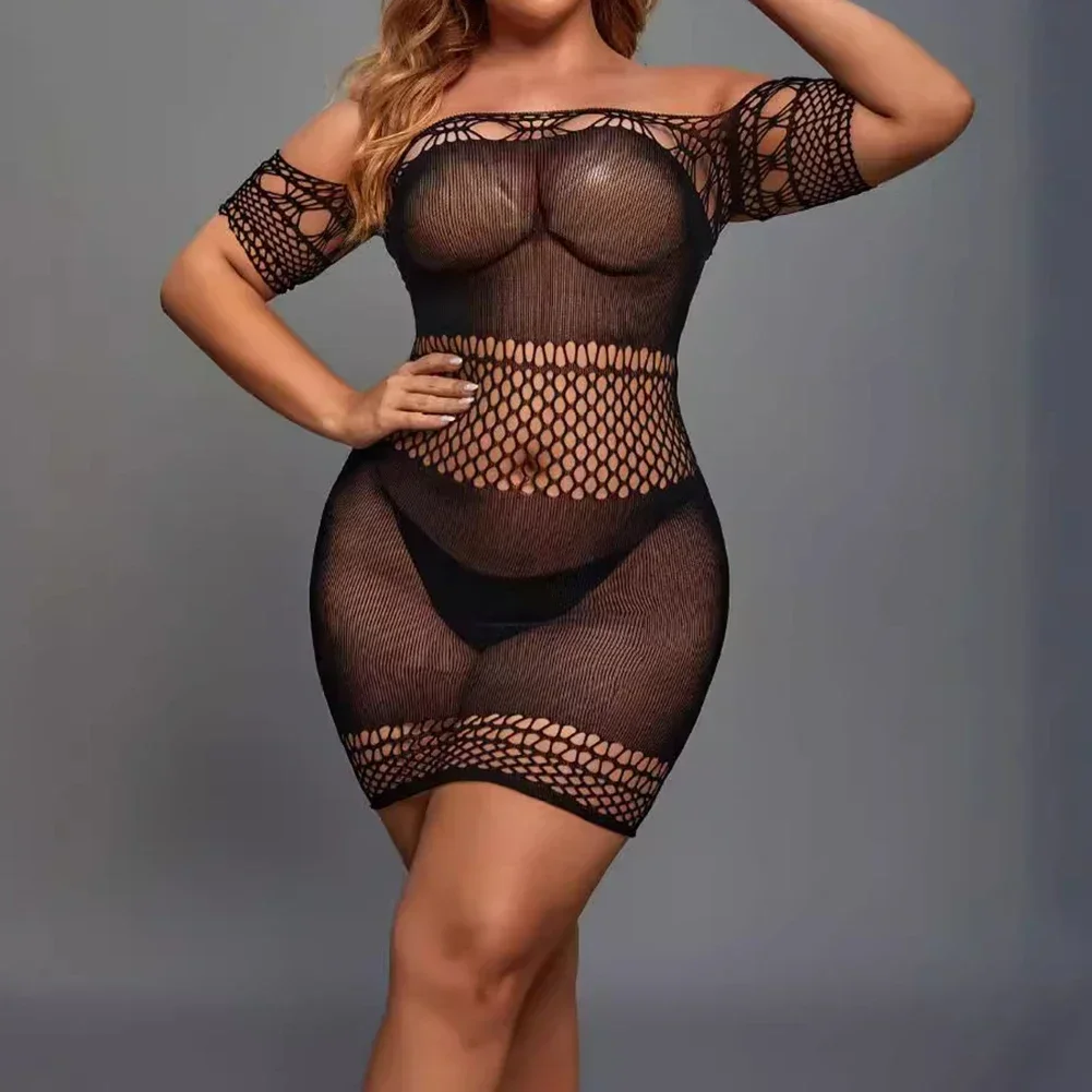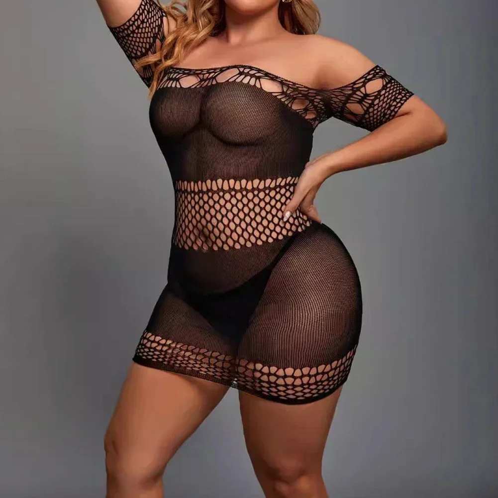 Hollow Design Fishnet Bodysuit Hot Bodysuit Hotel Use Nylon Fabric Short Sleeve Solid Color All Seasons Female