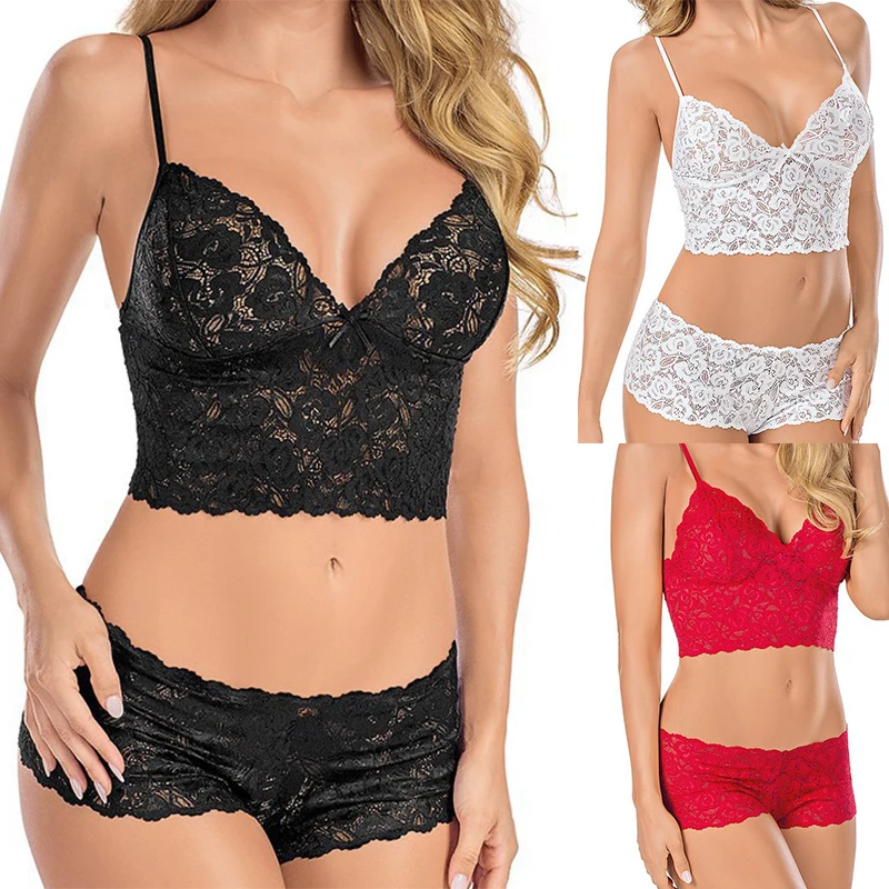 Women Sexy Lingerie Set Female Lace Mesh Eeotic Transparent Underwear Porno Panties Adjustable Shoulder Strap Triangle Cup Bra