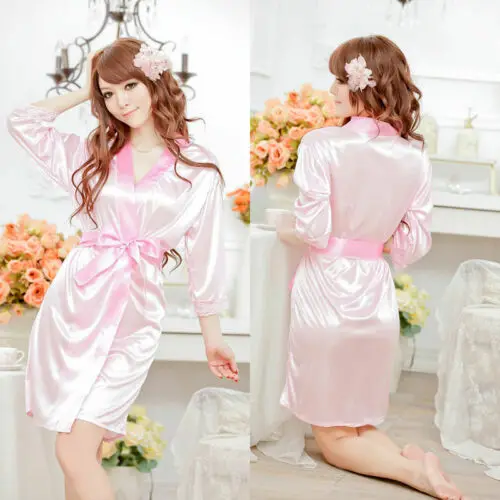 Women Satin Kimono Dressing Gown Long Bath Robe Nightie Dress Sleepwear Pajamas