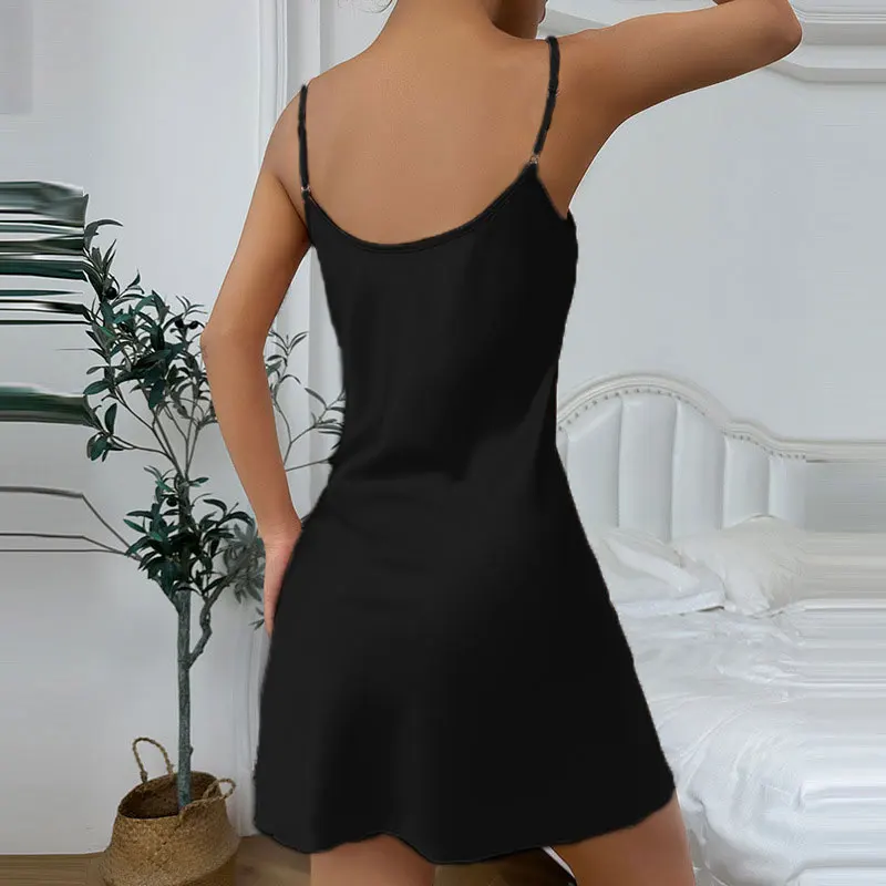 New Women's Small Fresh Short Skirt Nightgown Casual Breathable Sling Pajamas Set Imitation Silk Homewear Sexy Backless Dresses