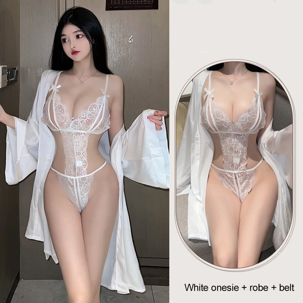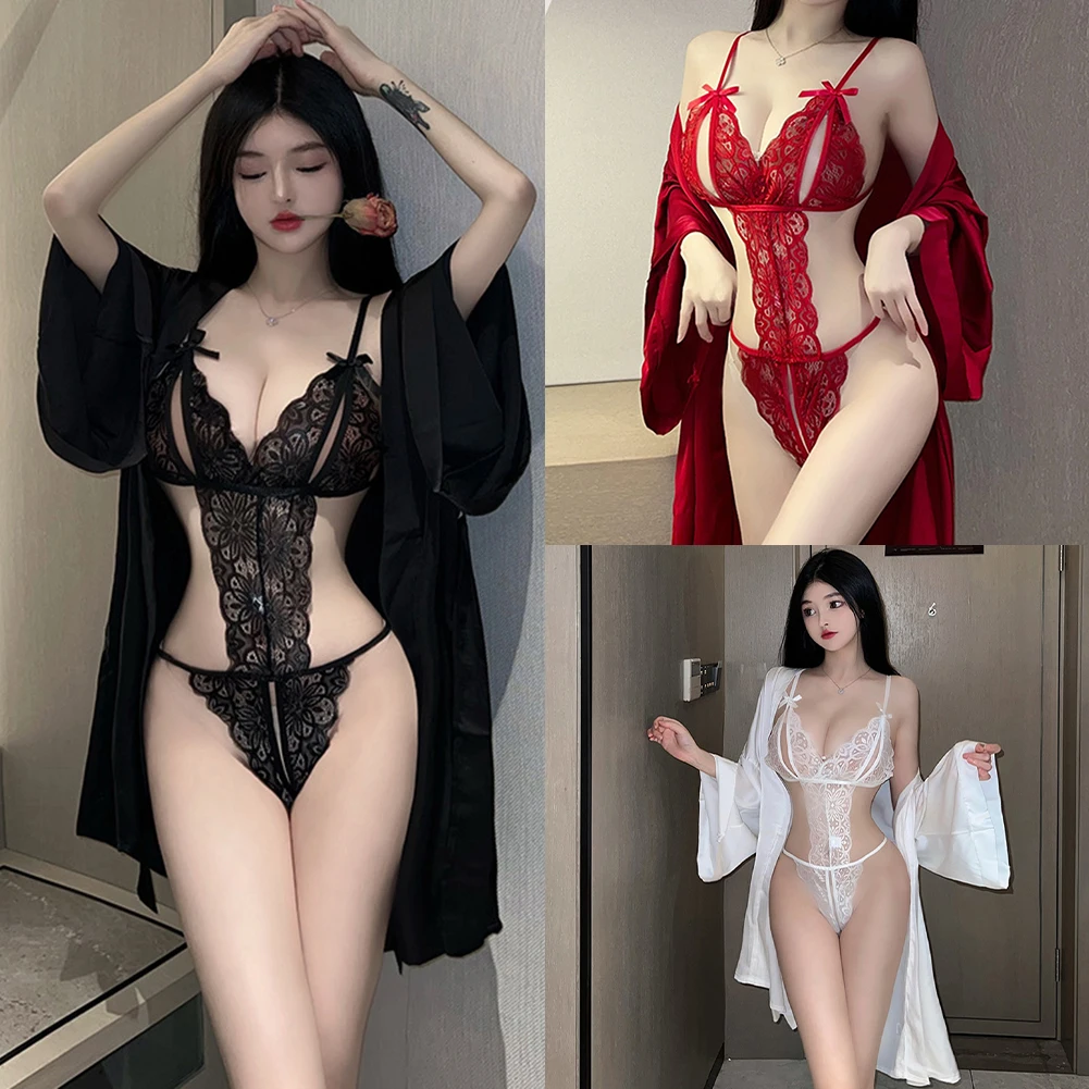 Name | Women Sexy Transparent Lingerie Crotchless Lace Hollow Exposed Butt Bodysuit Breathable Deep V Nightgown Hollow Out Perspective |