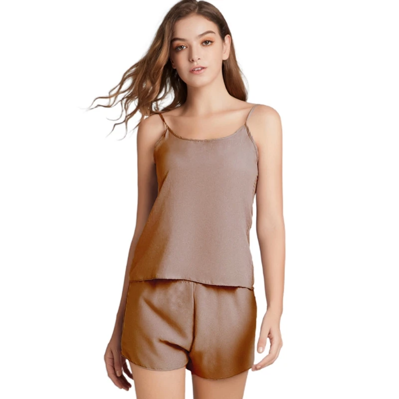 Women 2pcs Solid Color Pajamas Set Sleeveless Camisole for Tank Top Shorts Sleep