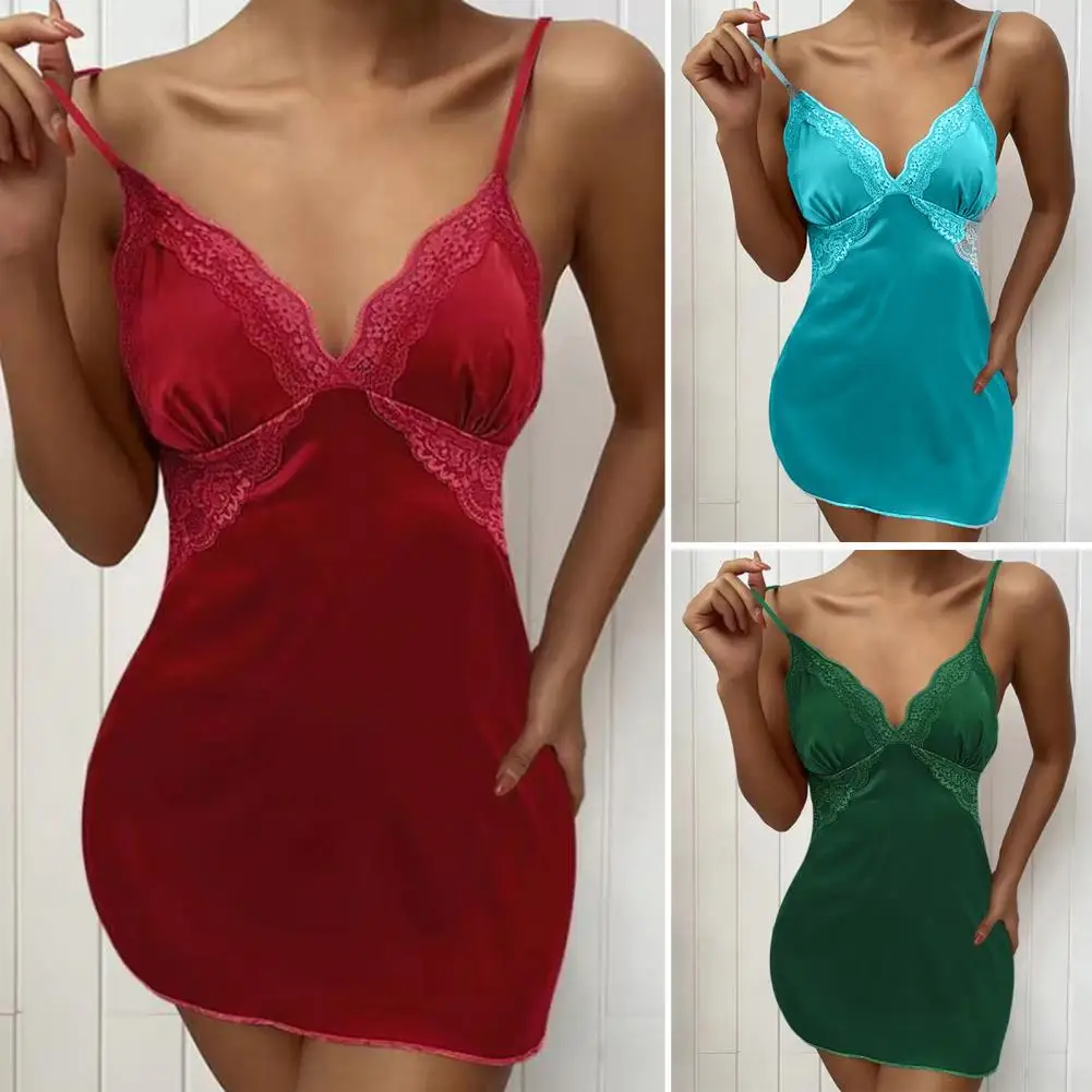 Name | Women Nightdress Solid Colors Lady Nighty Dress See-through Lace Deep V Neck Summer Nightgown For Bedroom |