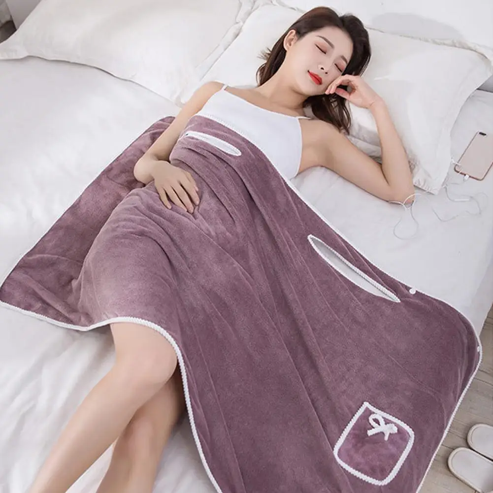 Coral Fleece Bath Towel Wrap Women Microfiber Bathrobe Water Absorbent Pocket Shower Wrap Spa Robe Bath Robe Lounge Sleepwear