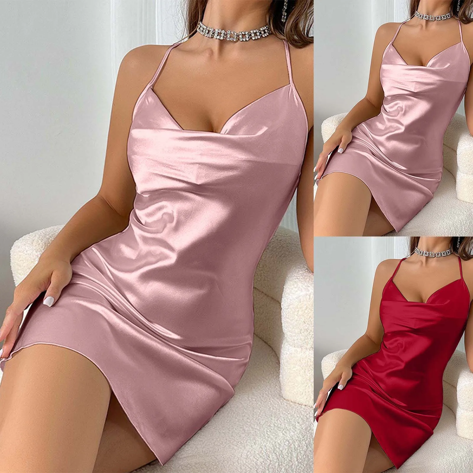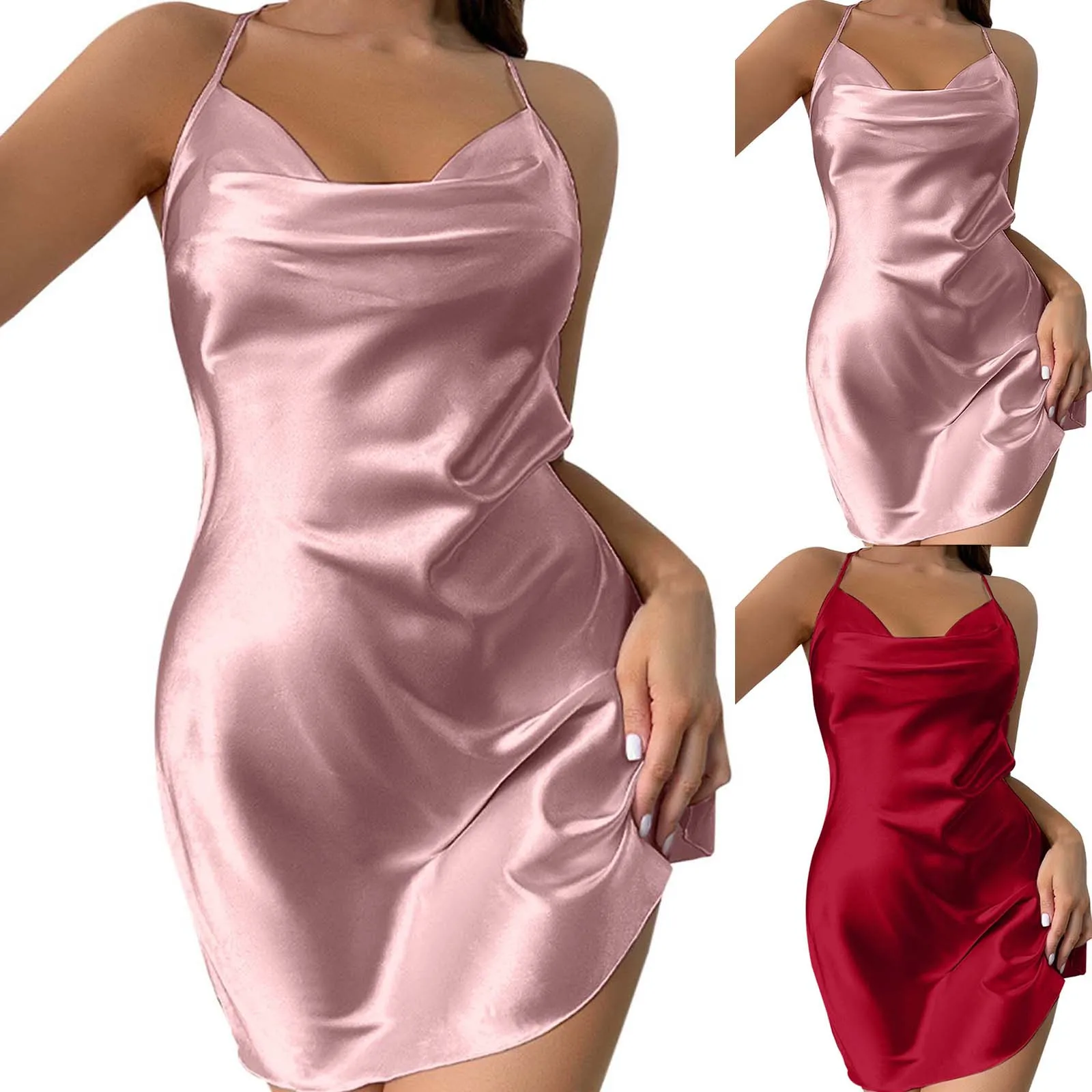 Name | Satin Nightshirts Sexy Silk Nightdress Spaghetti Strap Short Negligee Slip Bridal Nighties Sleep Dress Nightgown Chemise |