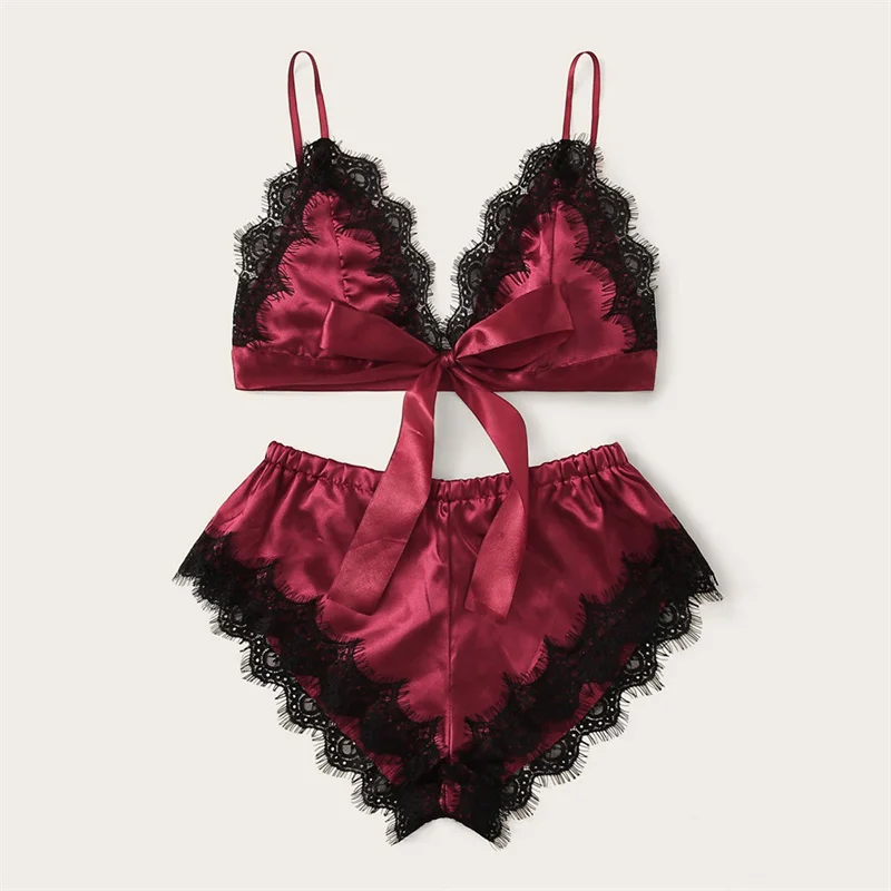 Name | Lace Sexy V-Neck Sleepwear Women's Fashion Sleeveless Satin Pajama Set Cute Top Shorts European American Style Erotic Lingerie |