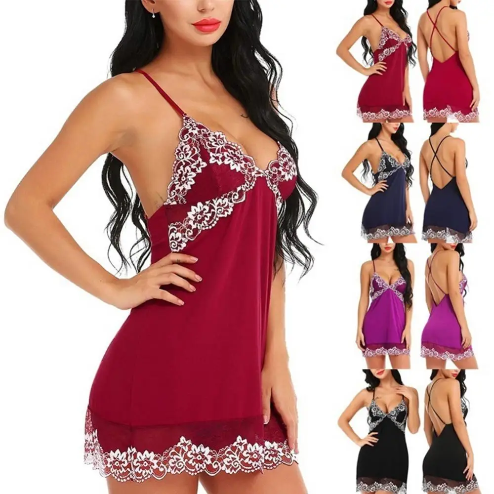 Sexy Women Nightgown Flower Pajamas V-Neck Sleeveless Backless Dress Sleepwear Women's Sleep & Lounge