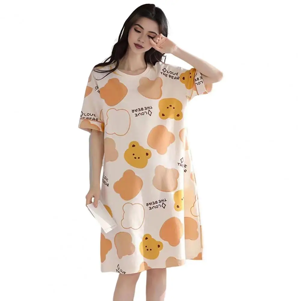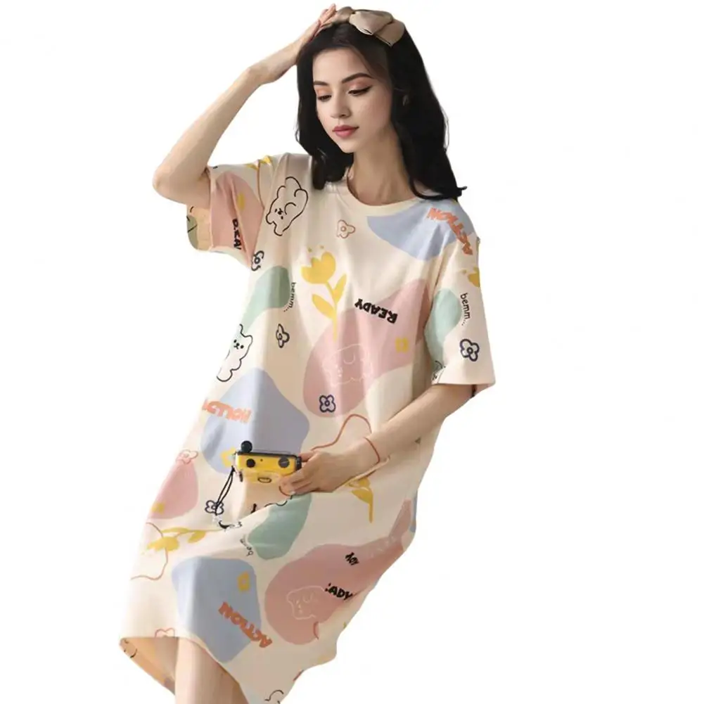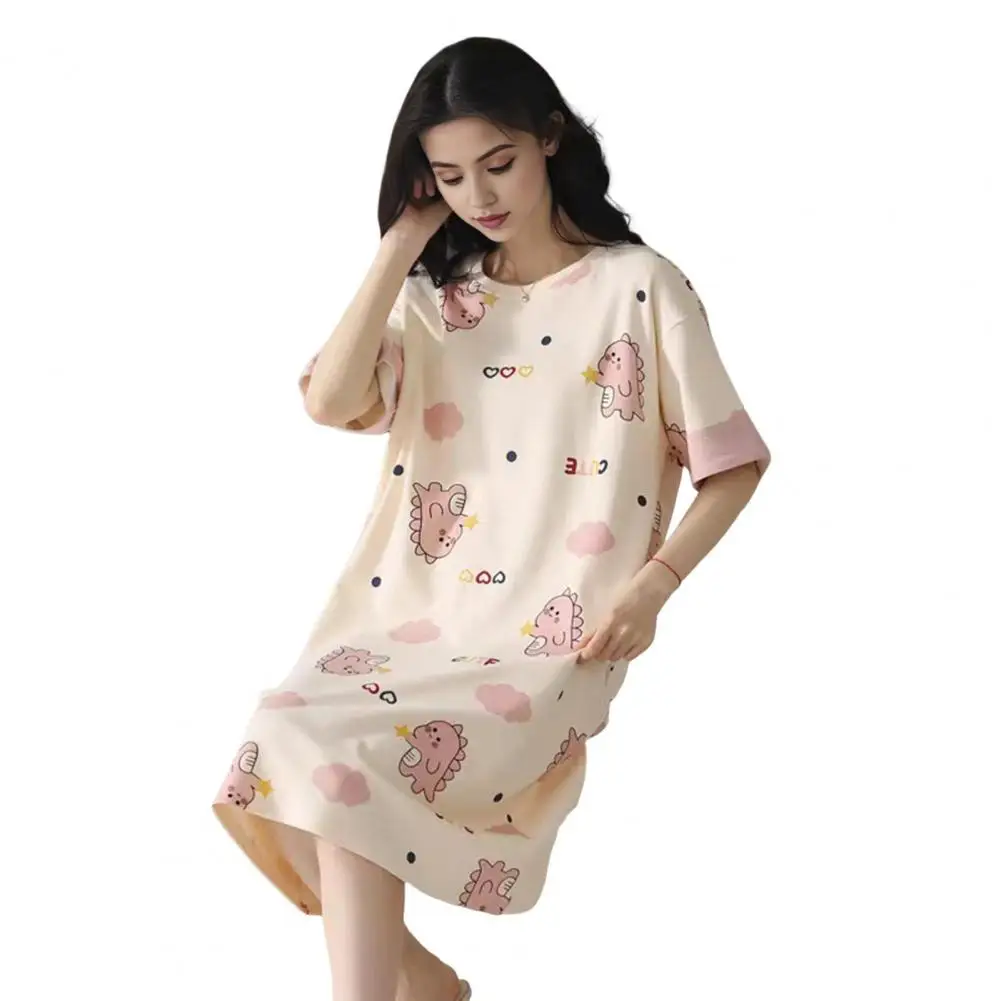 Name | Women Nightgown Print Summer O Neck Loose Short Sleeves Pullover Dress for Lady Knee Length Homewear |