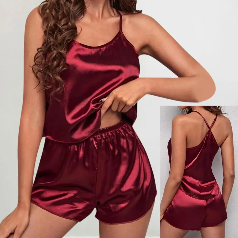 Name | Lightweight Loungewear Two Piece Pajama Set Elegant Satin Summer Pajama Set with Spaghetti Straps Off-shoulder Design for Women |