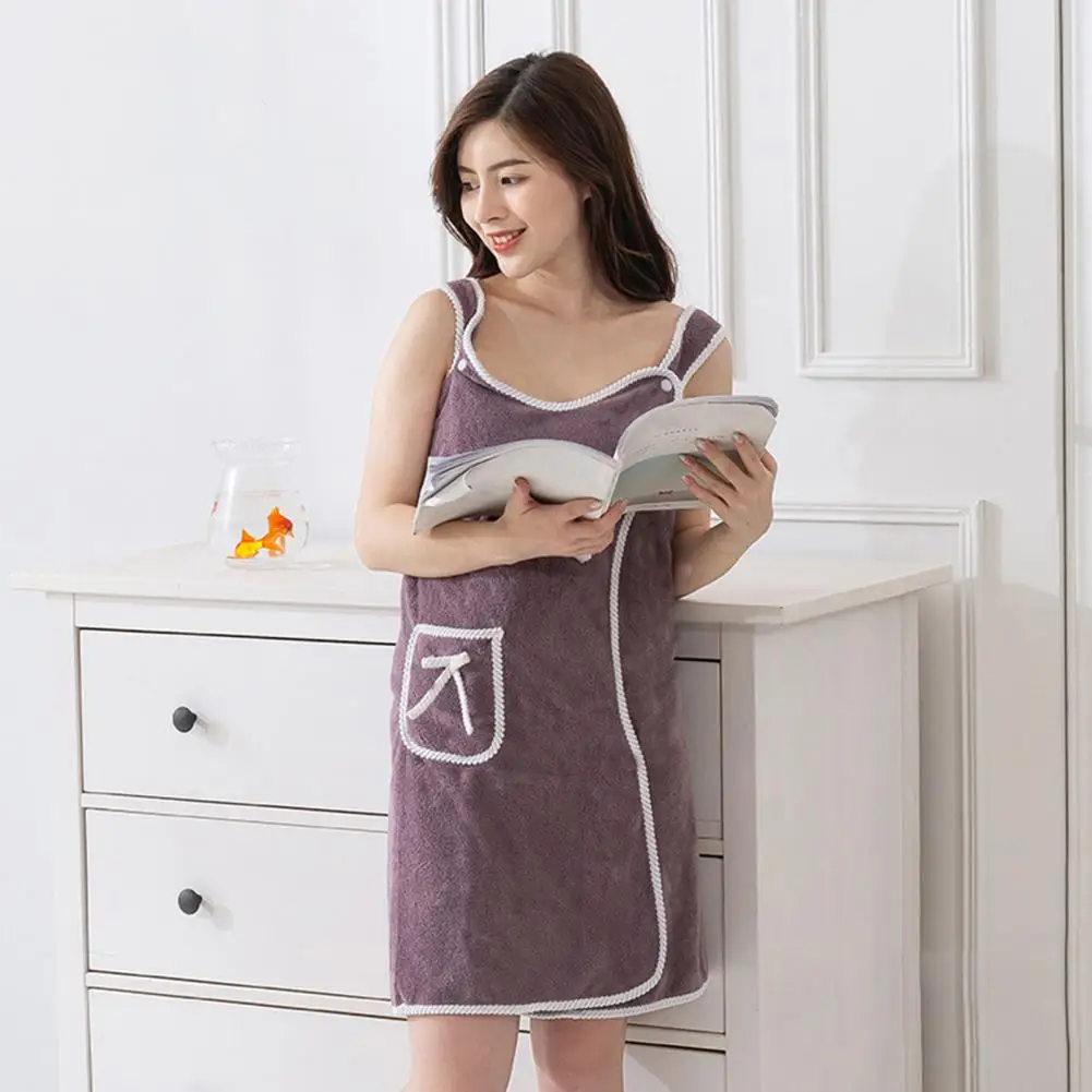 Women Plush Bathrobe Ultra-soft Microfiber Robe Soft Coral Fleece Bath Towel Wrap with Adjustable Button Closure for Shower