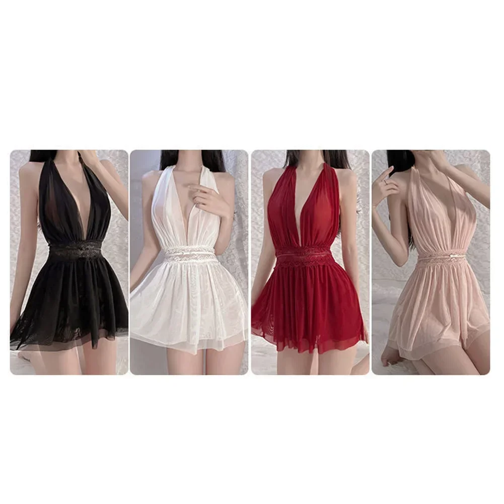 Name | Sexy Lingerie Women Lace Nightdress Mesh Hanging Neck Backless Tulle Perspective |