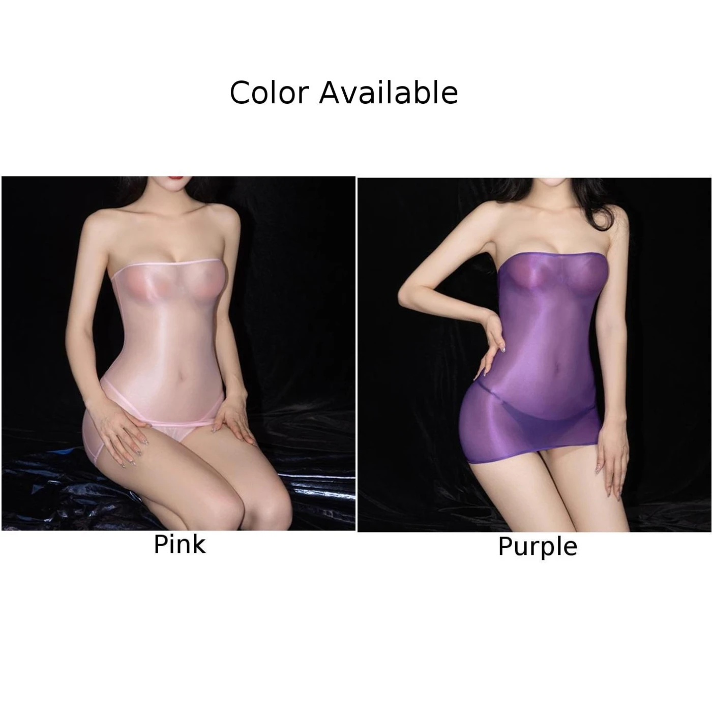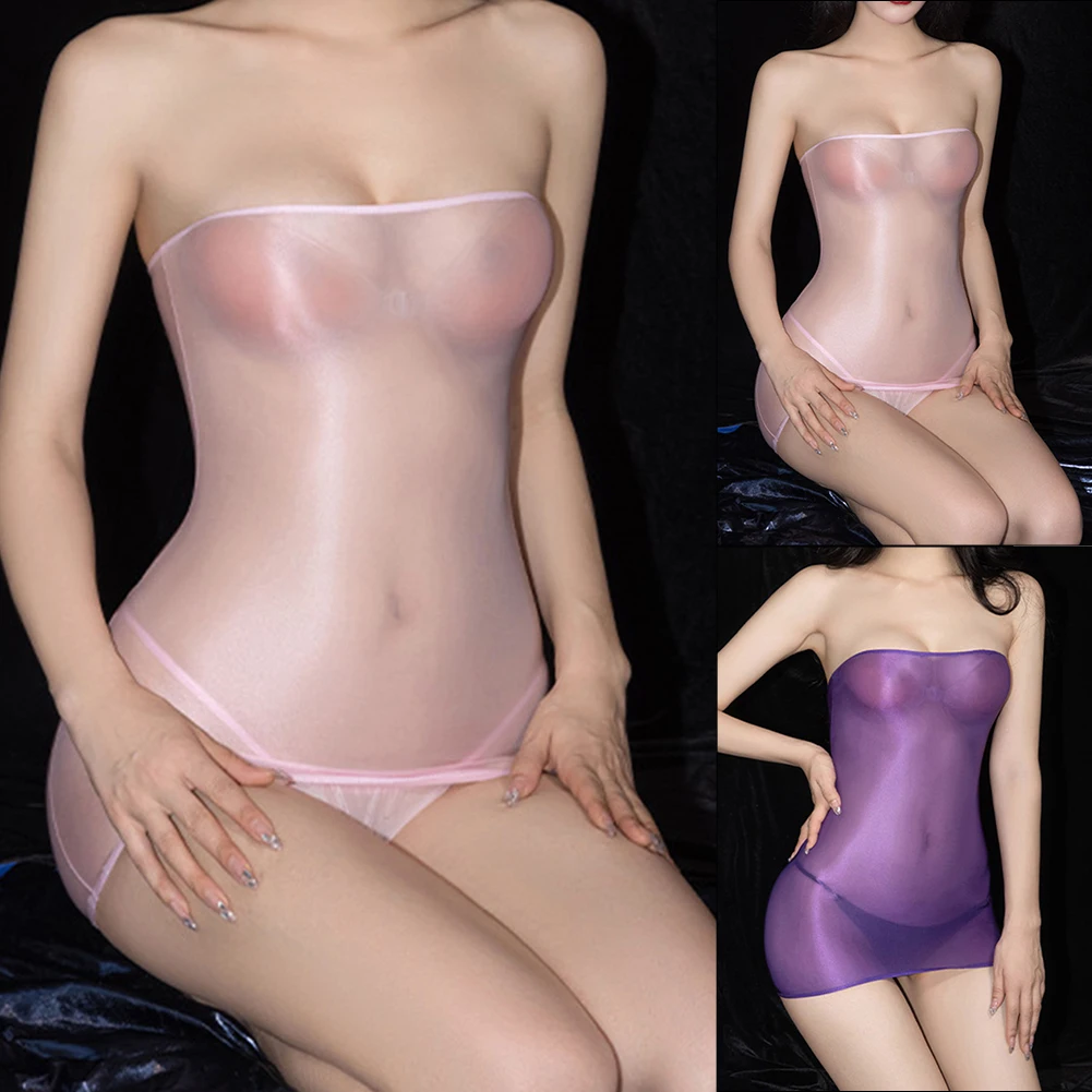 Name | Sexy Women Tube Dress Oil Shiny See Though Sheer High Strech Lingerie Nightwear Transparent Seamless Nightdress With Thongs |