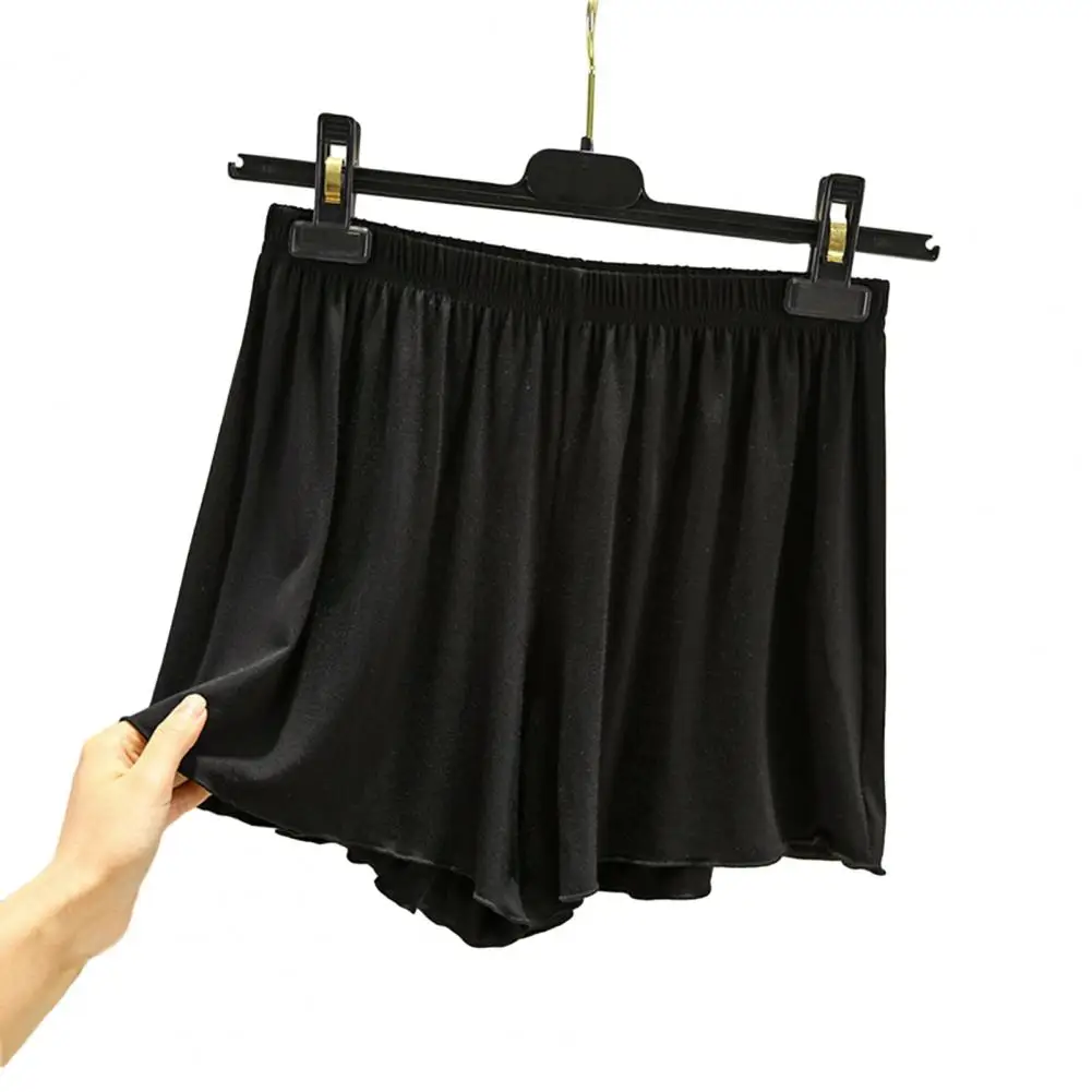 Women Summer Shorts Elastic Waist Shirring Edge Satin Sleeping Deep Crotch Pleated Pajama Shorts Loose Clothes