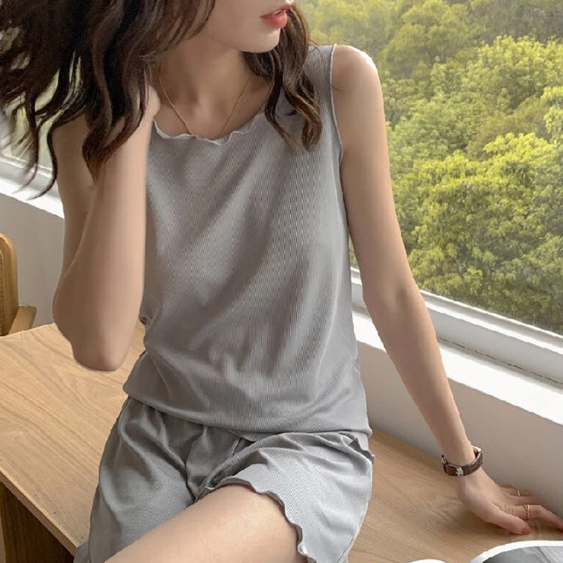 Fashionable Casual Home Loose Vest Shorts Home Wear Two-Piece Set For Women