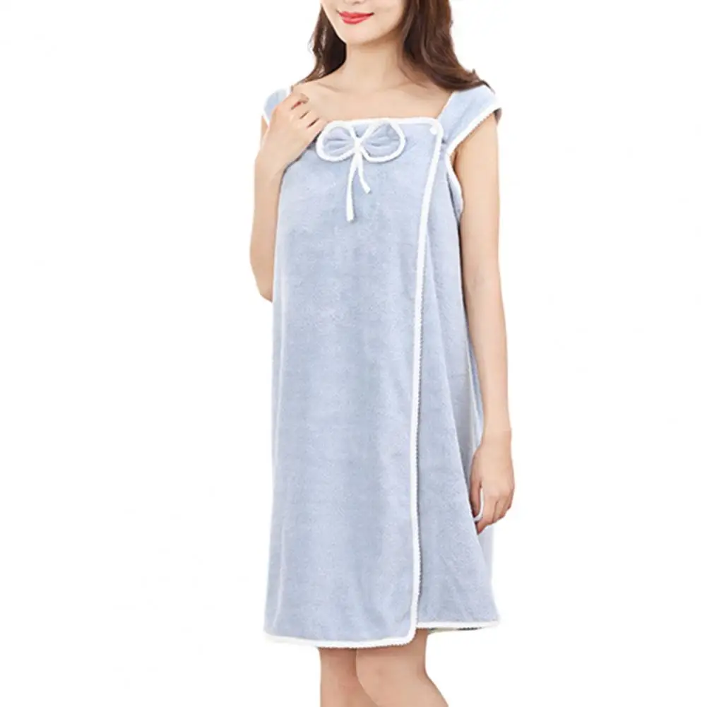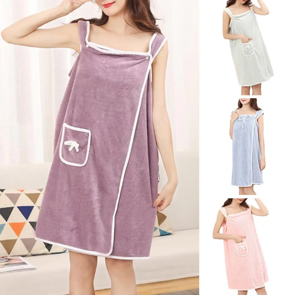 Coral Fleece Bath Towel Fast Drying Coral Fleece Bathrobe Dress with Bowknot Decor Pocket Buttons Women's Wearable Spa for Beach