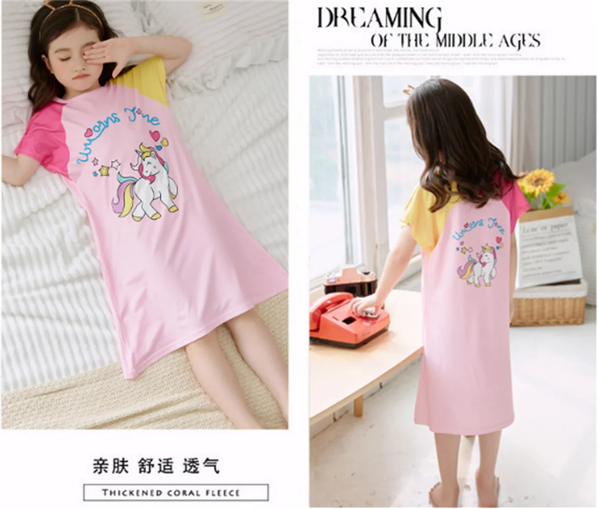 Name | Kids Girls 100% Cotton Nightgown Cartoon Nightdress Girl Sleepwear Nightie Summer Short Sleeves Nightwear Children Clothes |