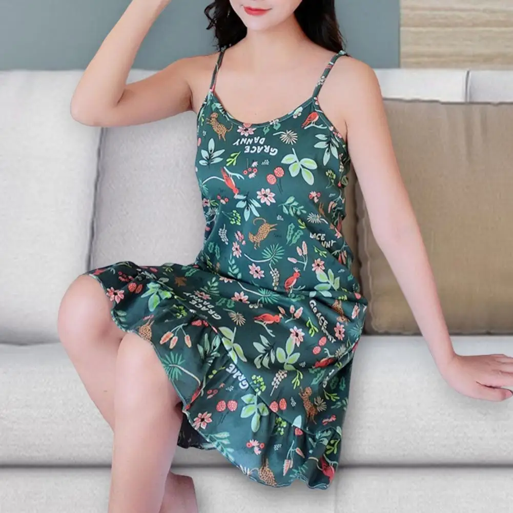 Name | Pajama Dress Korean Style Sleeveless Ruffle Hem Backless Loose Fit Girl Nightdress Sweet Print Striped Sling Sleepwear Home Wear |