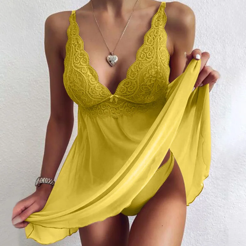 Women Lace Perspective V-neck Nightgown Sleeveless Body Suit Thin Intimate Clothes Pajamas Set Night Porn Short Dress Sleepwear