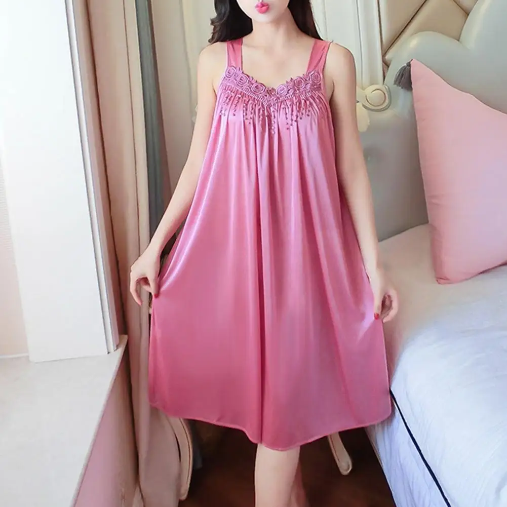 Lady Pajamas Solid Color Smooth Lace Patchwork Night Dress for Wedding Night Women Nightgowns Satin Lace Sleepwear Nightwear